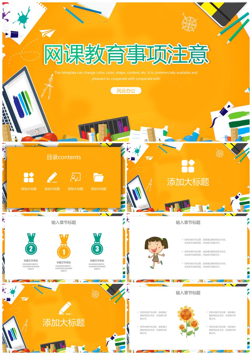 这是一张网课教育事项注意PPT模板,包含网课、教育、事项、注意等主题内容,也可用作提取的词语:网课、教育、事项、注意 组成的短语:网课教育事项注意、网课教育事项、网课教育注意、教育事项注意、网课教育、教育事项、事项注意等PPT场景使用。 风云办公提供的网课教育事项注意PPT模板,下载格式为pptx,一共12页,作品中文字及图均可以修改和编辑,图片更改请在作品中右键图片并更换,文字修改请直接点击文字进行修改。
