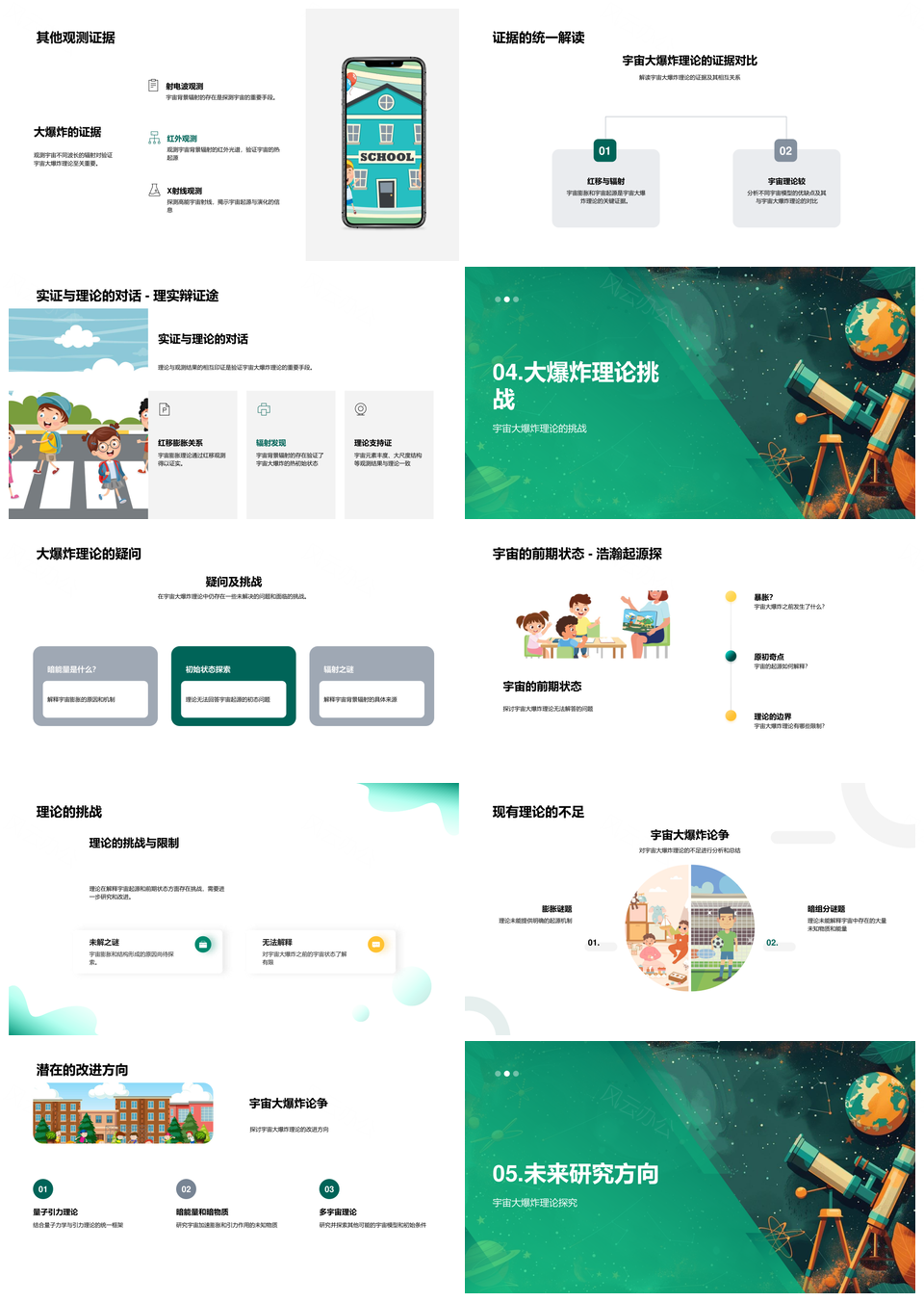 宇宙大爆炸理论红移背景辐射膨胀模型挑战进展PPT模板推荐