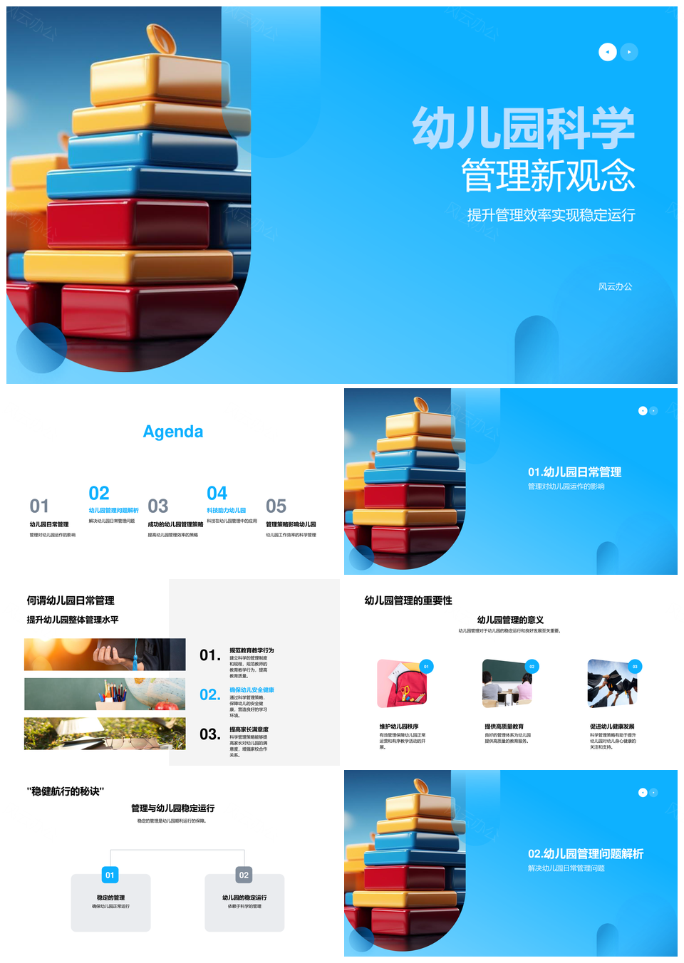 风云办公提供的幼儿园科学积木管理效率培训稳运行PPT模板,下载格式为pptx,一共23页,作品中文字及图均可以修改和编辑,图片更改请在作品中右键图片并更换,文字修改请直接点击文字进行修改。