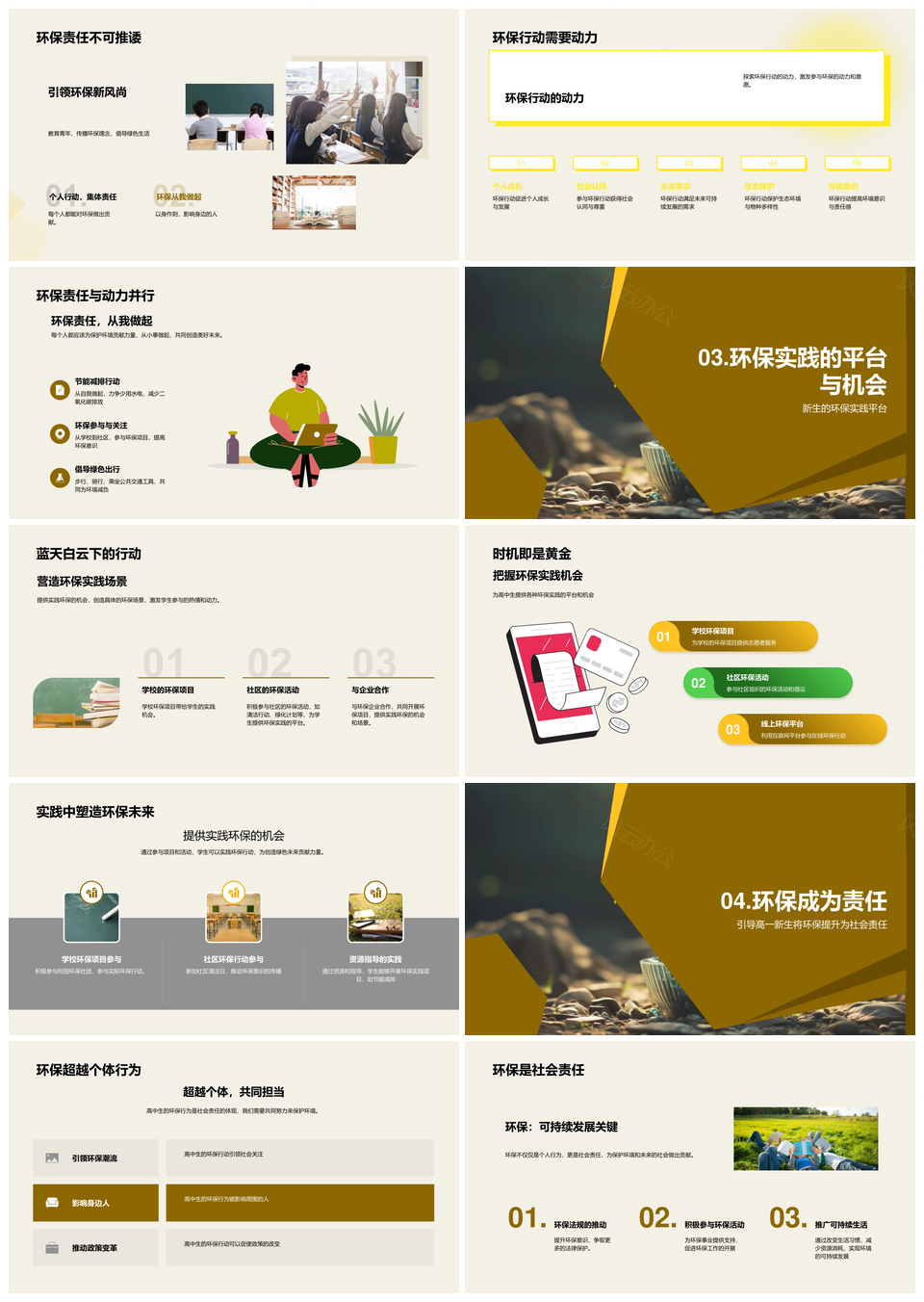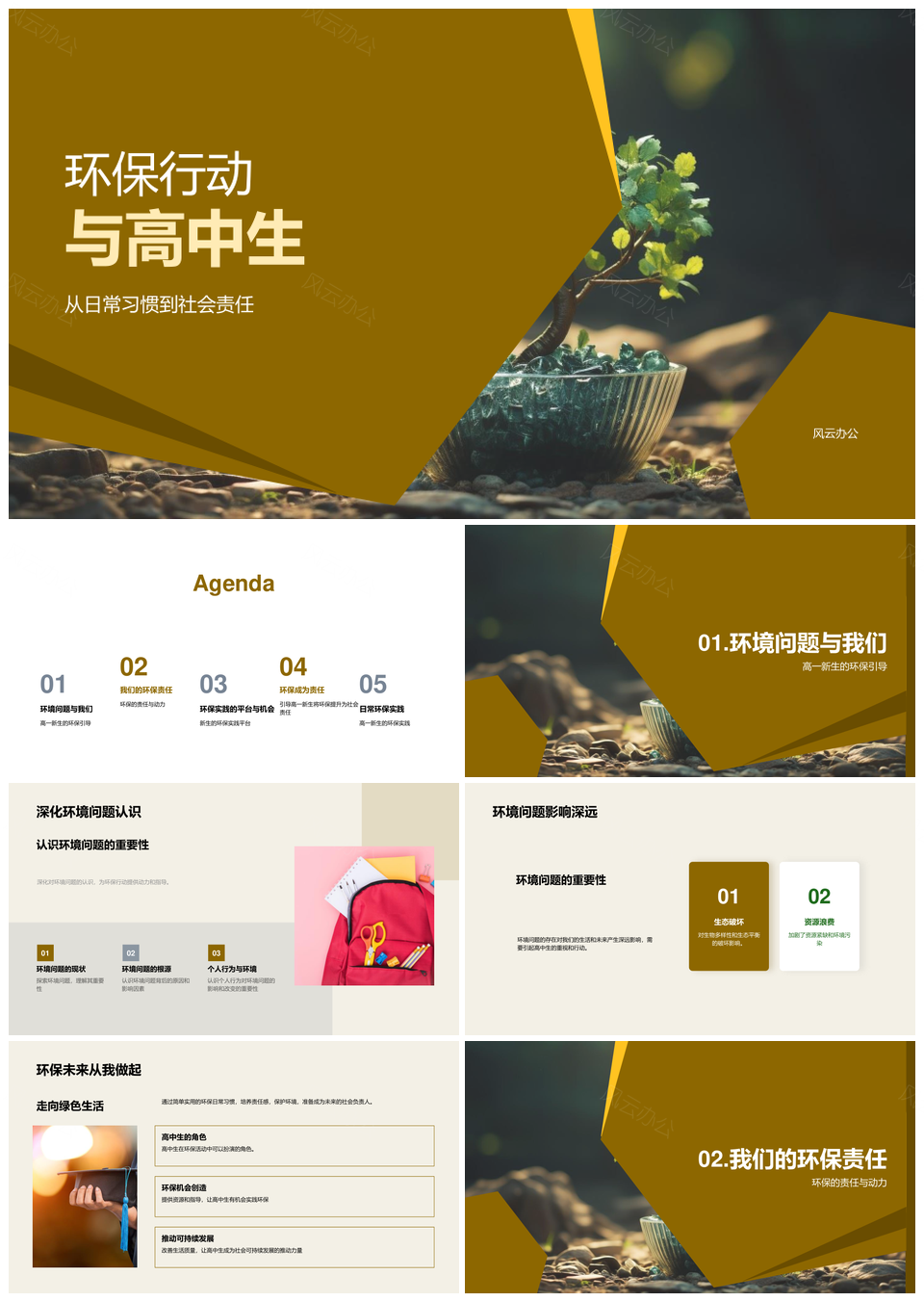 风云办公提供的高中生环保责任教育与实践日常行动PPT模板,下载格式为pptx,一共23页,作品中文字及图均可以修改和编辑,图片更改请在作品中右键图片并更换,文字修改请直接点击文字进行修改。