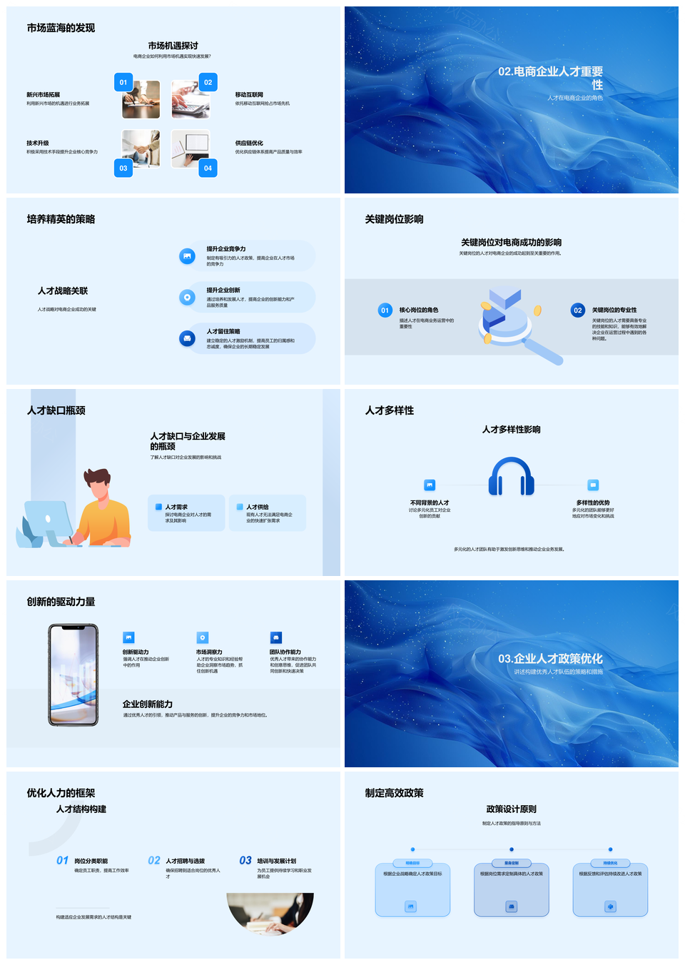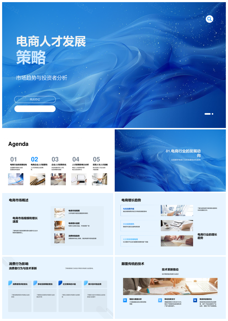 风云办公提供的电商人才策略趋势缺口竞争力分析PPT模板,下载格式为pptx,一共33页,作品中文字及图均可以修改和编辑,图片更改请在作品中右键图片并更换,文字修改请直接点击文字进行修改。