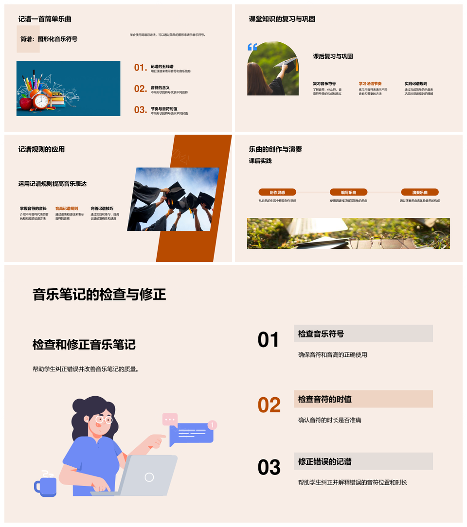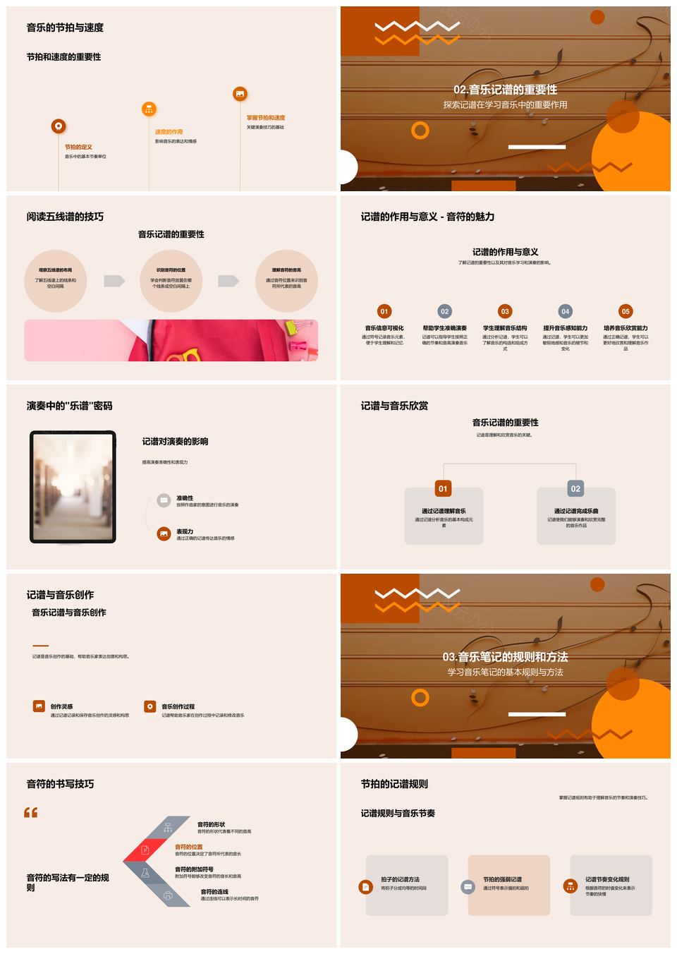 这是一张音乐学堂五线谱记谱写旋律音符节奏笔记PPT模板,包含音乐学堂、五线谱、记谱、谱写、旋律、音符、节奏、笔记等主题内容,也可用作音乐学堂五线谱记谱、音乐学堂五线谱旋律、音乐学堂记谱写旋律、音乐五线谱记谱节奏、学堂五线谱写旋律音符、五线谱记谱写旋律音符、记谱写旋律音符节奏、音乐音符节奏笔记、五线谱旋律音符节奏、学堂旋律音符节奏笔记、音乐学堂旋律音符、五线谱旋律节奏笔记、学堂五线谱节奏、音乐记谱节奏、音符节奏笔记等PPT场景使用。 风云办公提供的音乐学堂五线谱记谱写旋律音符节奏笔记PPT模板,下载格式为pptx,一共33页,作品中文字及图均可以修改和编辑,图片更改请在作品中右键图片并更换,文字修改请直接点击文字进行修改。
