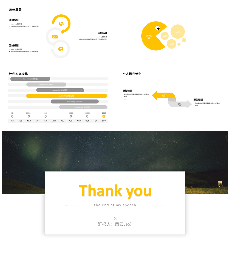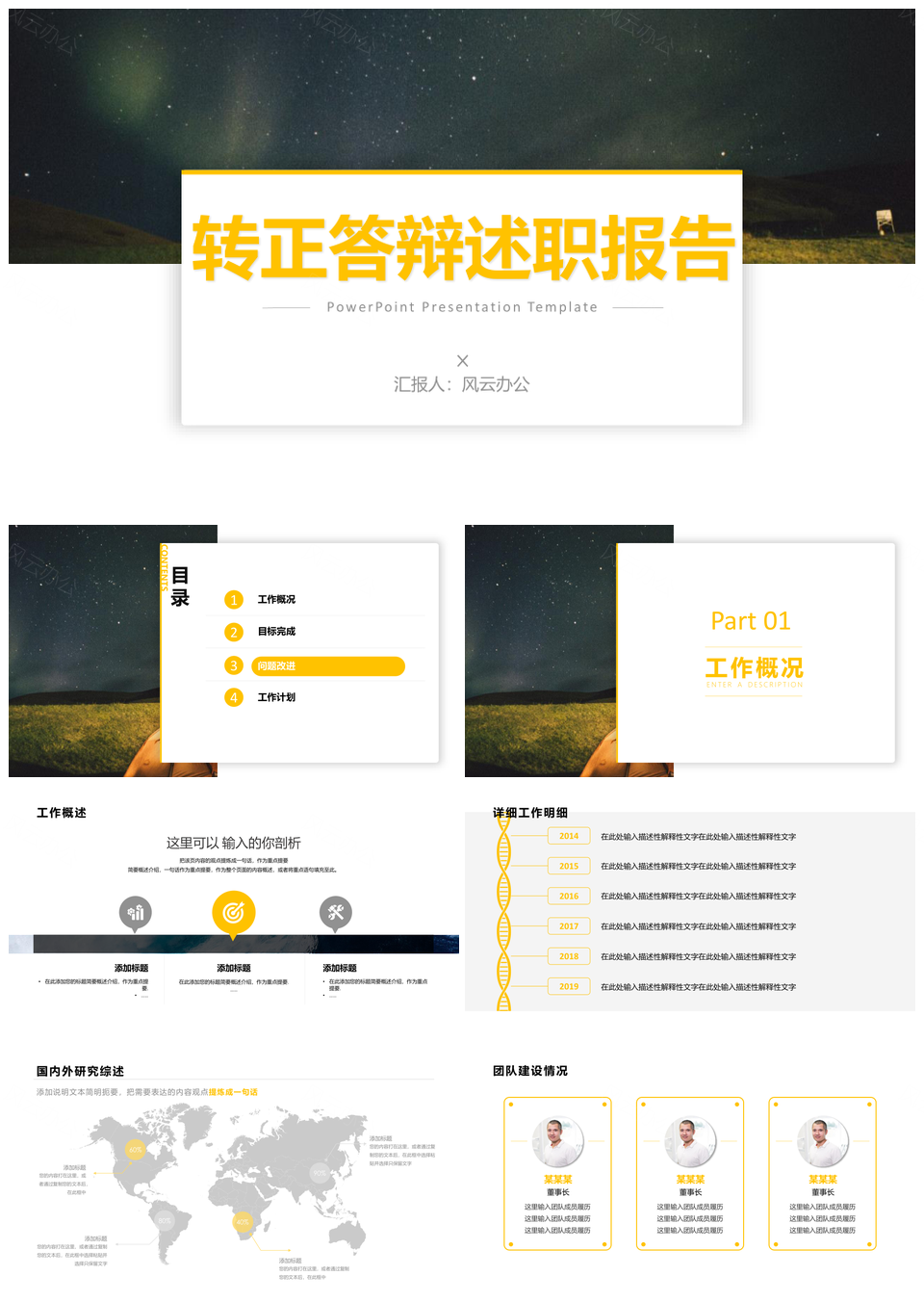 风云办公提供的静态黄色大气商务风员工转正PPT模板,下载格式为pptx,一共22页,作品中文字及图均可以修改和编辑,图片更改请在作品中右键图片并更换,文字修改请直接点击文字进行修改。