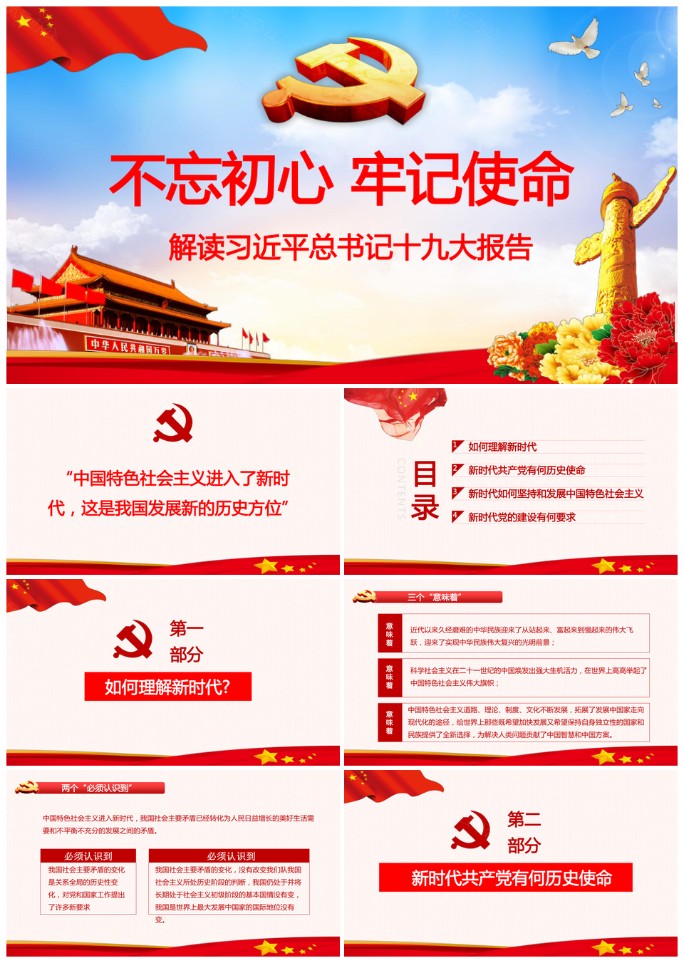 红色解读十九大报告深入分析解读党政精神PPT模板推荐