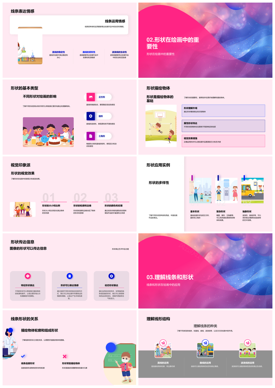 美术基础教学理论与实践线条色彩形状分类PPT模板