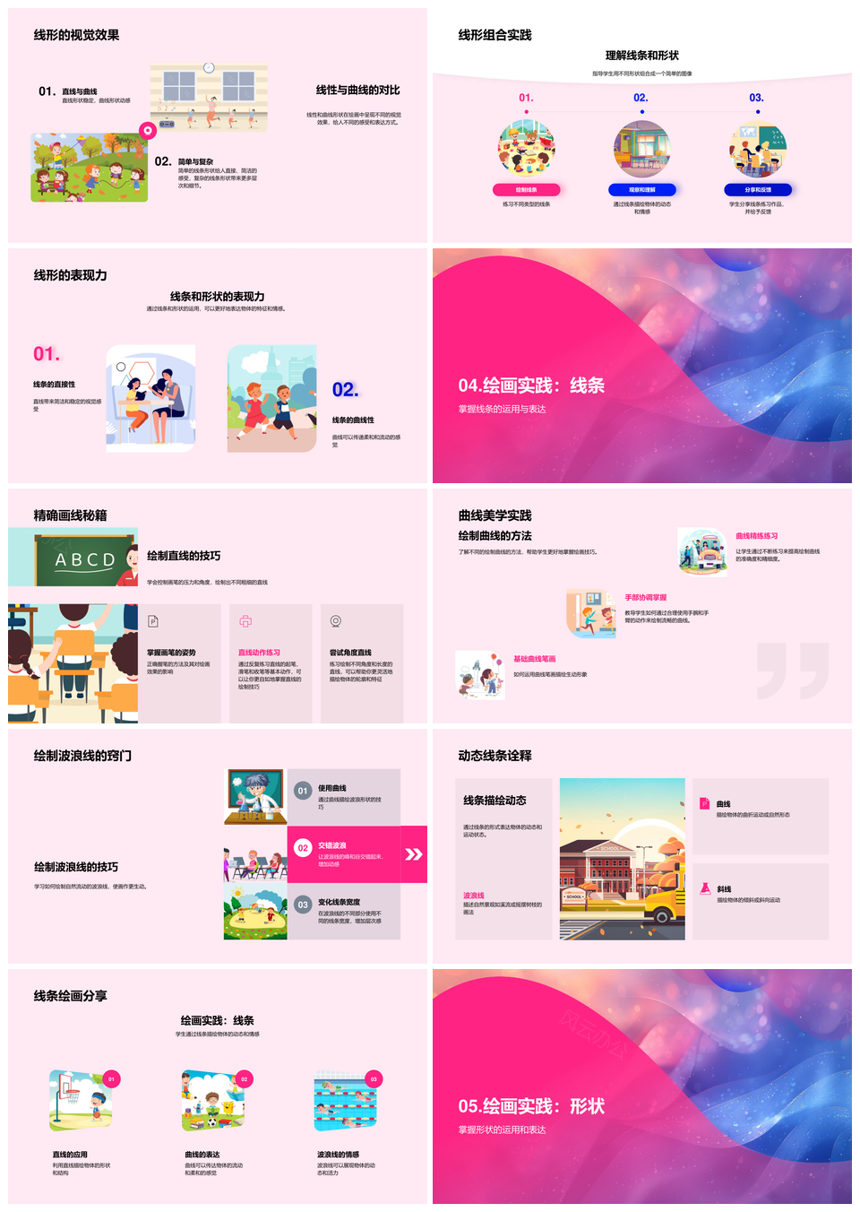 美术线条基础种类运用与情感形绘教学PPT模板推荐