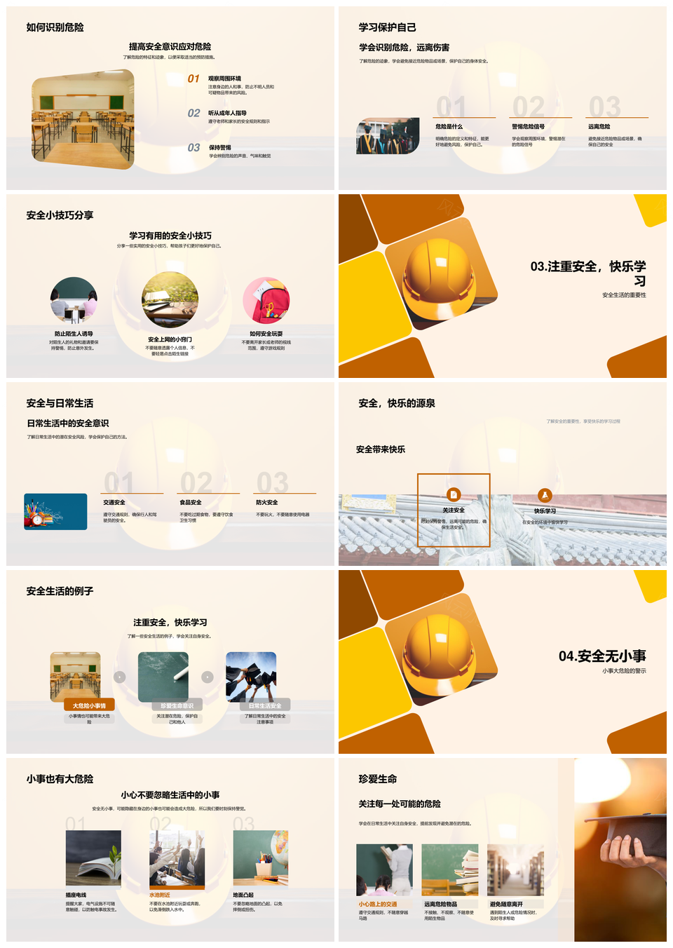 风云办公提供的快乐学安全知识守护生活技巧PPT模板,下载格式为pptx,一共23页,作品中文字及图均可以修改和编辑,图片更改请在作品中右键图片并更换,文字修改请直接点击文字进行修改。