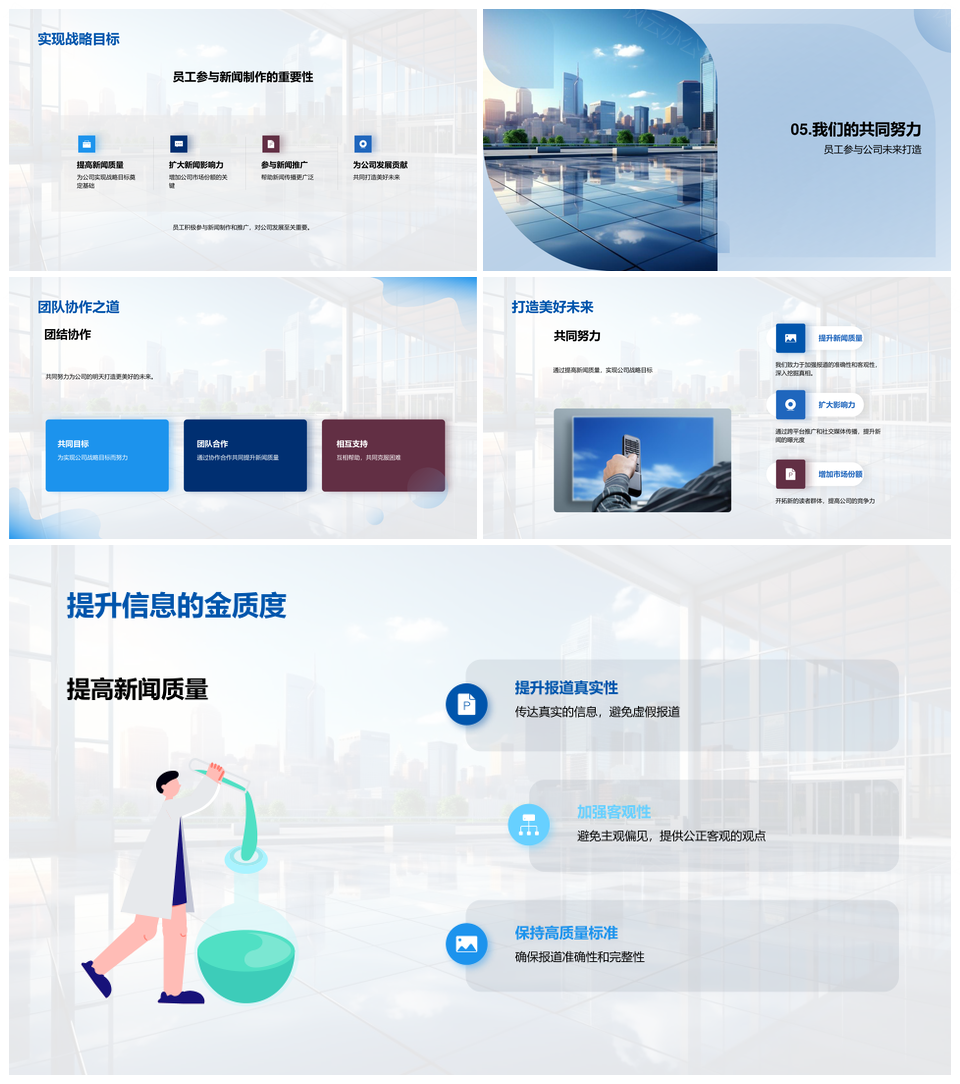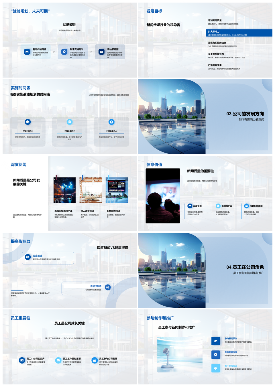 风云办公提供的新闻愿景传媒共展战略成就发展目标PPT模板,下载格式为pptx,一共23页,作品中文字及图均可以修改和编辑,图片更改请在作品中右键图片并更换,文字修改请直接点击文字进行修改。