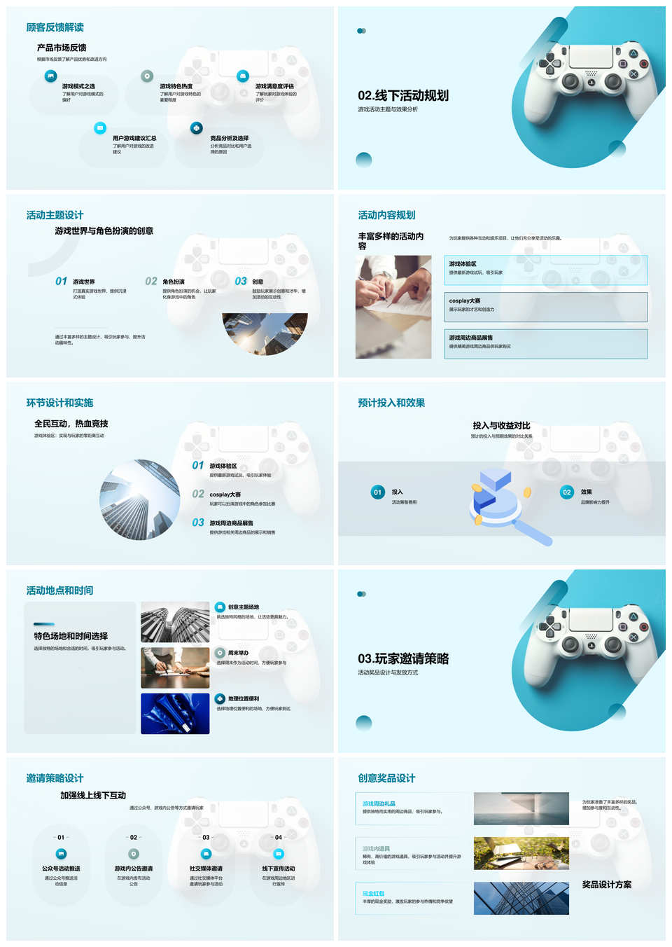 游戏产品经理线下活动营销策略主题内容规划投入效果PPT模板推荐