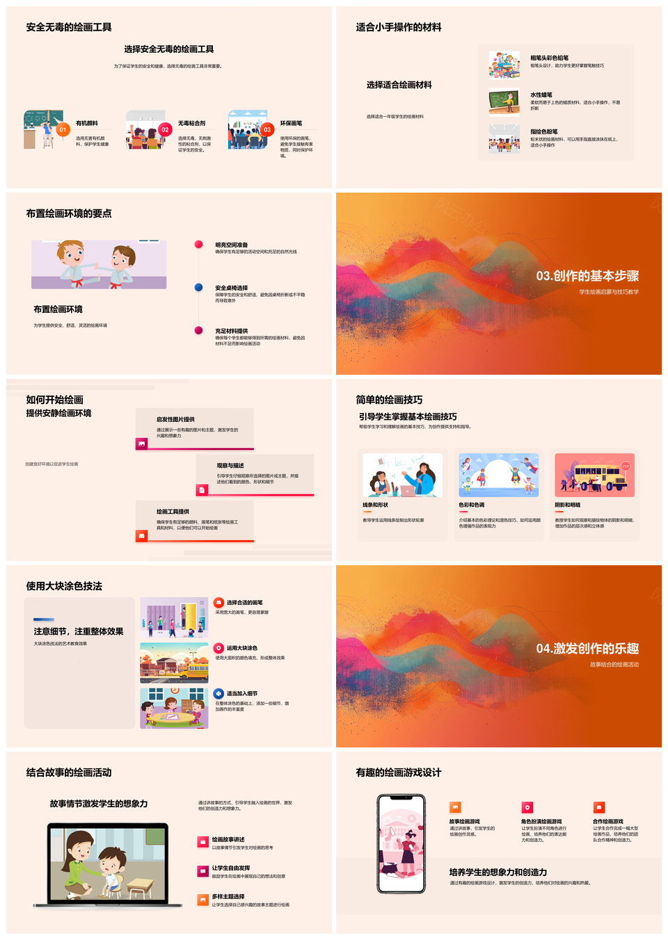 这是一张2025一年级安全绘画创意技巧故事环境协调教学PPT模板,包含2025、一年级、安全、绘画、创意、技巧、故事、环境、协调、教学等主题内容,也可用作2025一年级安全绘画创意、一年级安全绘画创意技巧、安全绘画创意技巧故事、绘画创意技巧故事环境、创意技巧故事环境协调、故事环境协调教学、2025安全创意环境协调、安全绘画故事环境协调、一年级创意技巧教学、绘画故事环境协调、2025一年级创意教学、创意故事环境教学、安全绘画协调教学、一年级环境协调、技巧环境教学等PPT场景使用。 风云办公提供的2025一年级安全绘画创意技巧故事环境协调教学PPT模板,下载格式为pptx,一共23页,作品中文字及图均可以修改和编辑,图片更改请在作品中右键图片并更换,文字修改请直接点击文字进行修改。