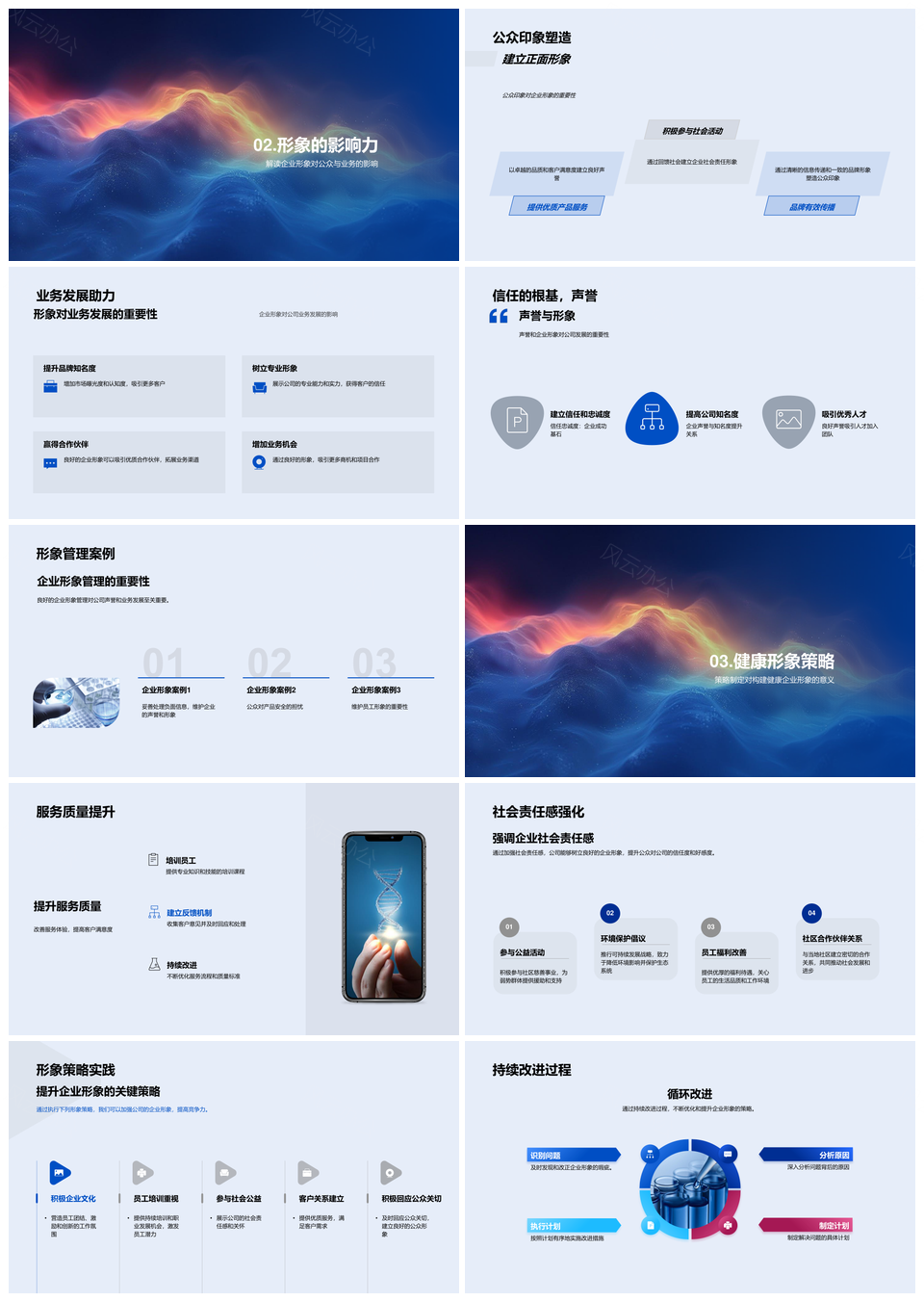 这是一张医保企业形象员工文化服务声誉社会责任公众PPT模板,包含医保企业、形象、员工、文化、服务、声誉、社会责任、公众等主题内容,也可用作医保企业形象员工、企业员工文化服务、文化服务声誉社会责任、服务声誉社会责任公众、医保企业社会责任公众、企业形象文化服务、医保企业服务声誉、企业社会责任公众、员工文化服务声誉、服务社会责任公众、医保企业员工文化、企业形象服务声誉、文化社会责任公众、医保公众形象员工、企业社会责任文化等PPT场景使用。 风云办公提供的医保企业形象员工文化服务声誉社会责任公众PPT模板,下载格式为pptx,一共28页,作品中文字及图均可以修改和编辑,图片更改请在作品中右键图片并更换,文字修改请直接点击文字进行修改。