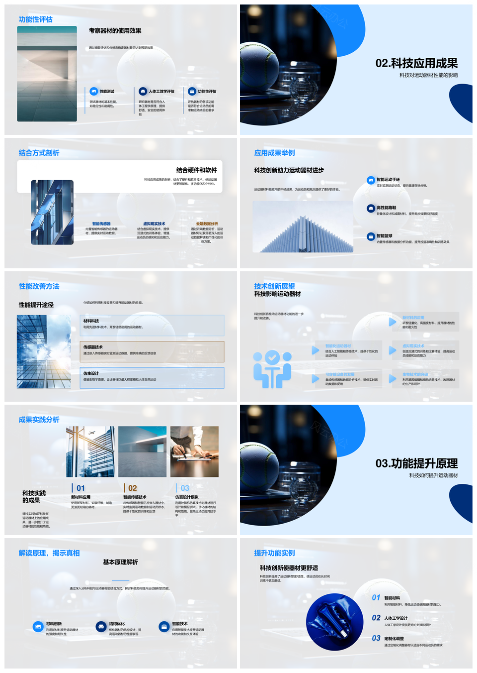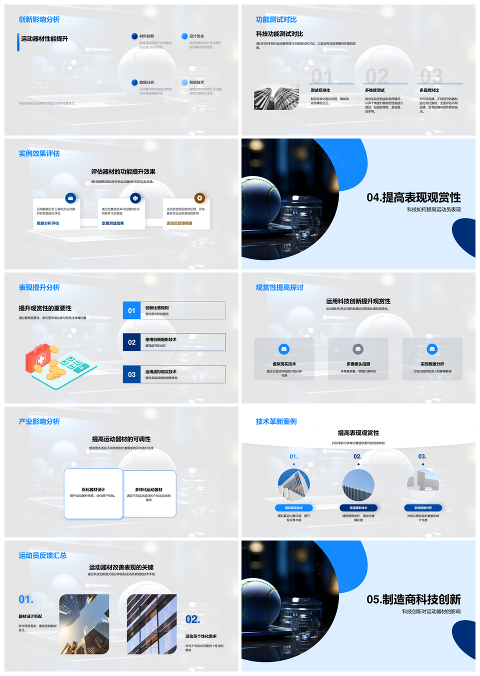 风云办公提供的科技创新驱动运动器材功能与表现革新PPT模板,下载格式为pptx,一共33页,作品中文字及图均可以修改和编辑,图片更改请在作品中右键图片并更换,文字修改请直接点击文字进行修改。