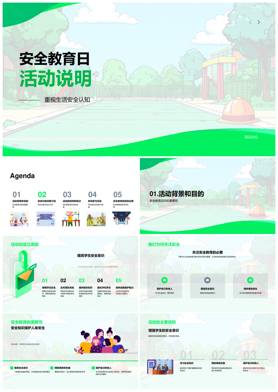 风云办公提供的学生安全教育日活动安全知识生活认知PPT模板,下载格式为pptx,一共28页,作品中文字及图均可以修改和编辑,图片更改请在作品中右键图片并更换,文字修改请直接点击文字进行修改。