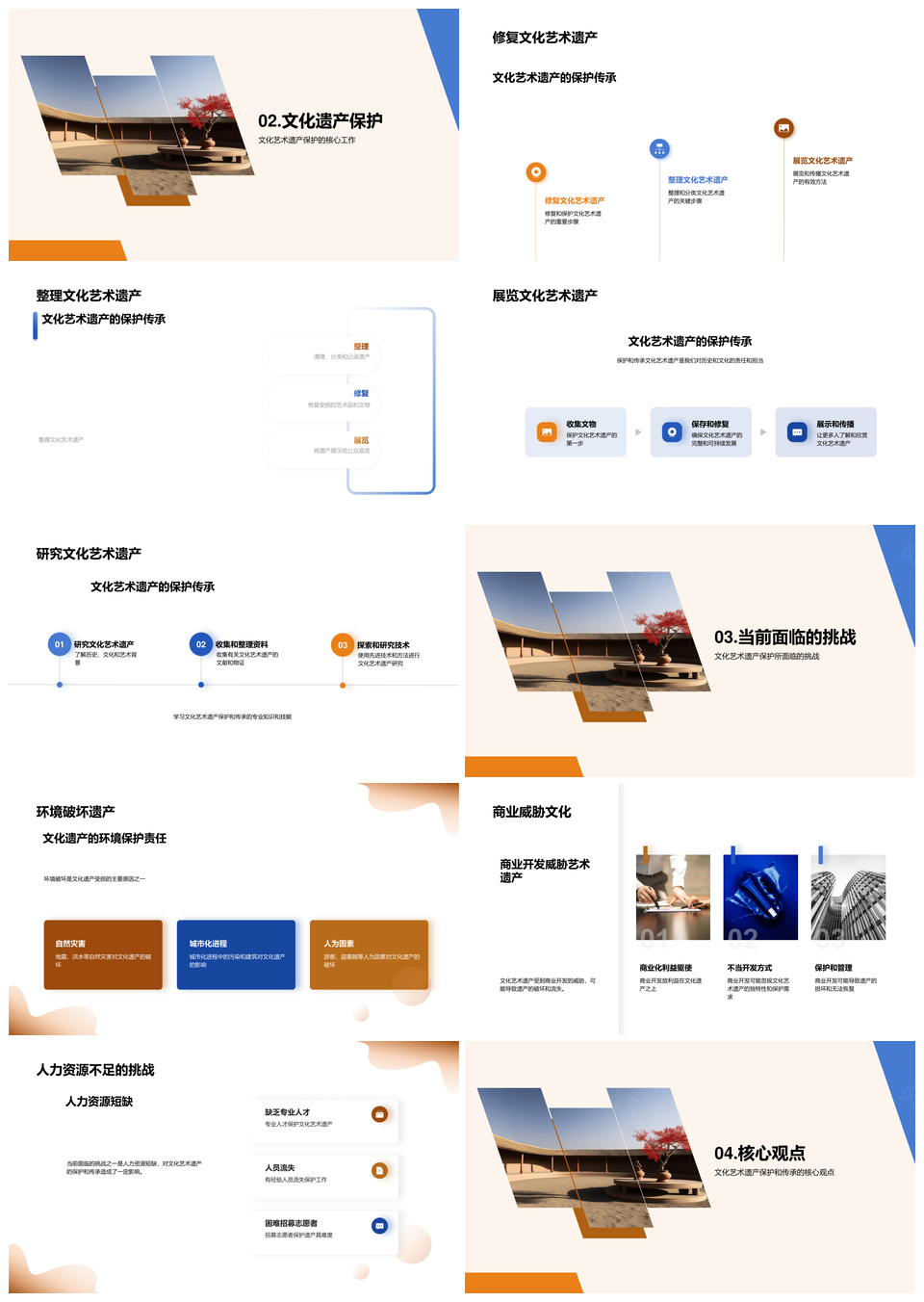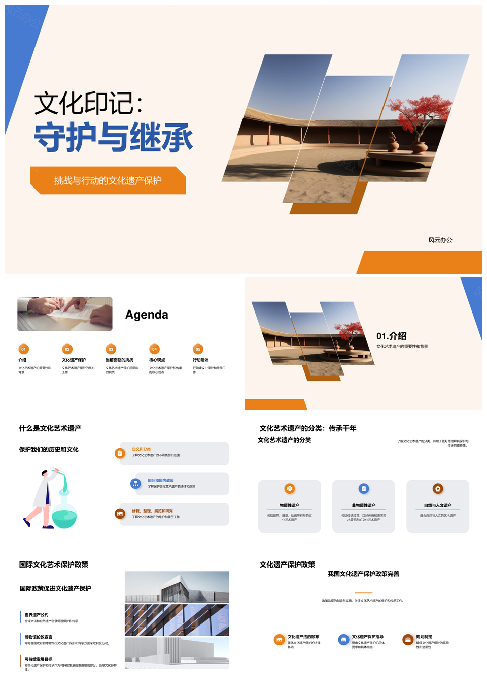 风云办公提供的文化艺术遗产国际保护修复传承整理PPT模板,下载格式为pptx,一共26页,作品中文字及图均可以修改和编辑,图片更改请在作品中右键图片并更换,文字修改请直接点击文字进行修改。