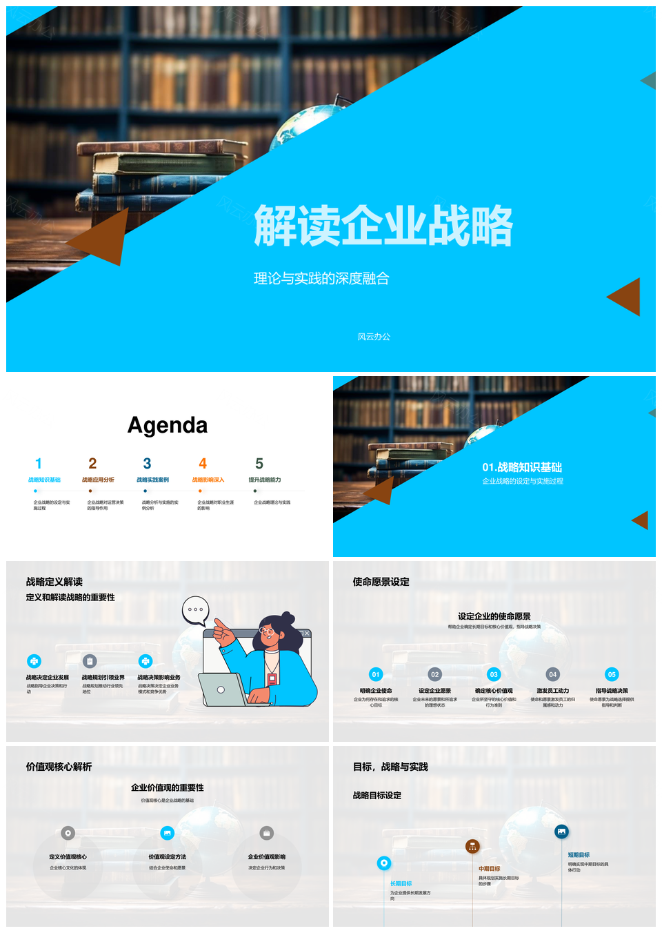 风云办公提供的企业战略实践决策与使命价值观研究PPT模板,下载格式为pptx,一共33页,作品中文字及图均可以修改和编辑,图片更改请在作品中右键图片并更换,文字修改请直接点击文字进行修改。