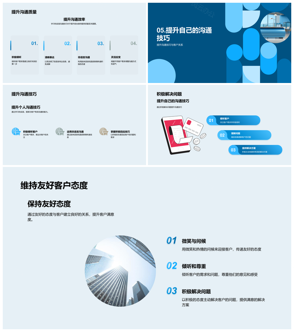 这是一张前台接待培训提升沟通效能客户满意PPT模板,包含前台接待、培训、提升、沟通效能、客户满意等主题内容,也可用作培训提升沟通效能、客户满意前台接待、前台接待培训提升、提升沟通客户满意、培训提升沟通、前台接待培训、提升沟通效能、客户满意前台、前台接待、接待培训、培训提升、提升沟通、沟通效能、客户满意、提升效能等PPT场景使用。