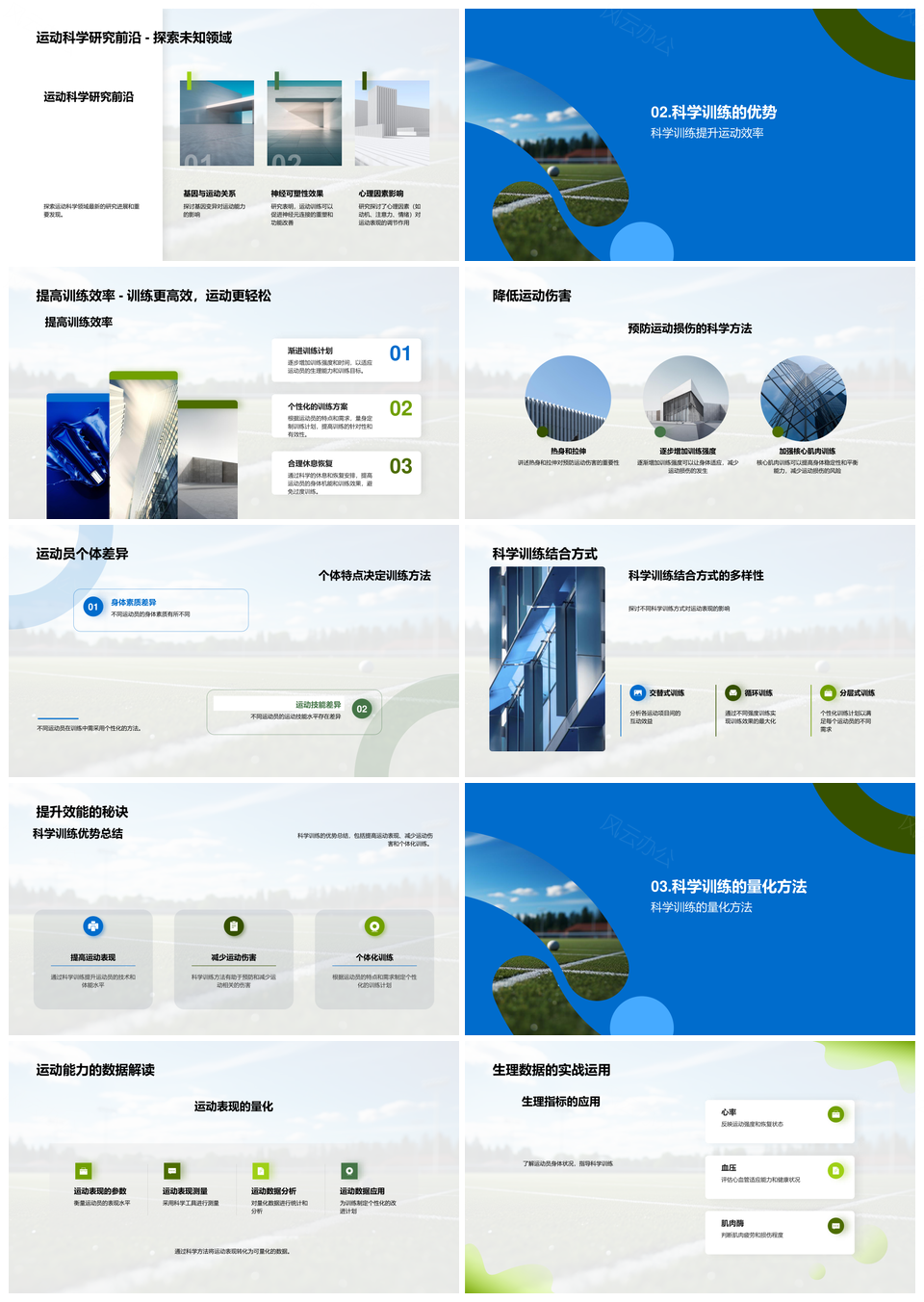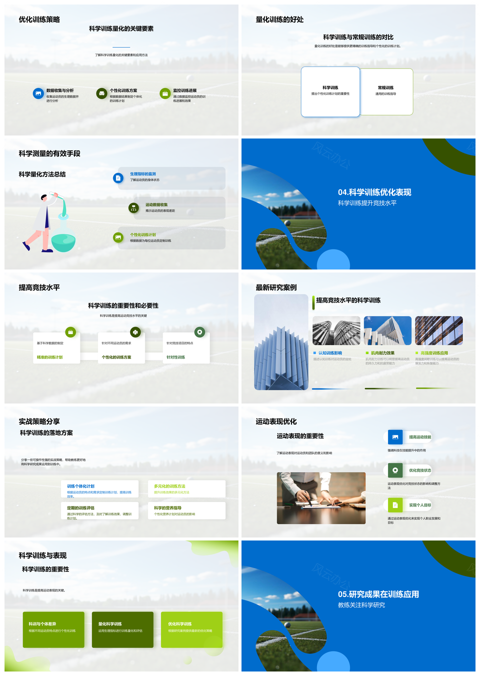 这是一张科学训练优化运动表现效率PPT模板,包含科学训练、优化、运动表现、效率等主题内容,也可用作科学训练优化运动、训练优化运动表现、优化运动表现效率、科学训练优化、训练优化运动、优化运动表现、运动表现效率、科学训练、训练优化、优化运动、运动表现、表现效率等PPT场景使用。 风云办公提供的科学训练优化运动表现效率PPT模板,下载格式为pptx,一共33页,作品中文字及图均可以修改和编辑,图片更改请在作品中右键图片并更换,文字修改请直接点击文字进行修改。