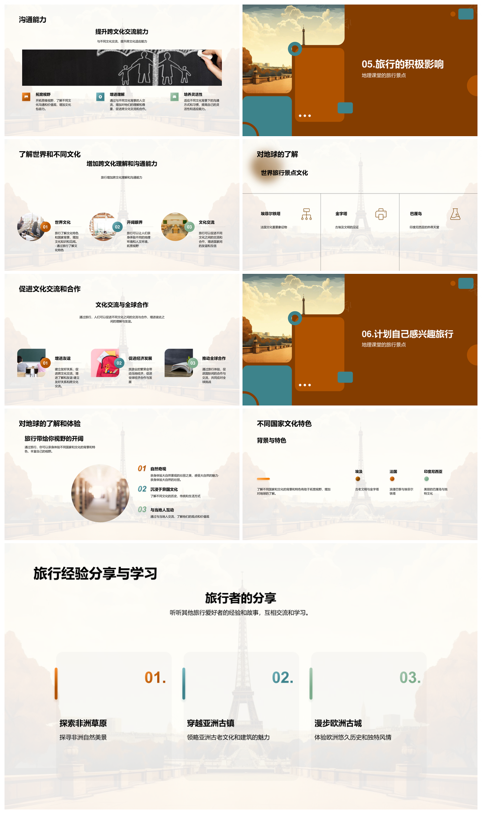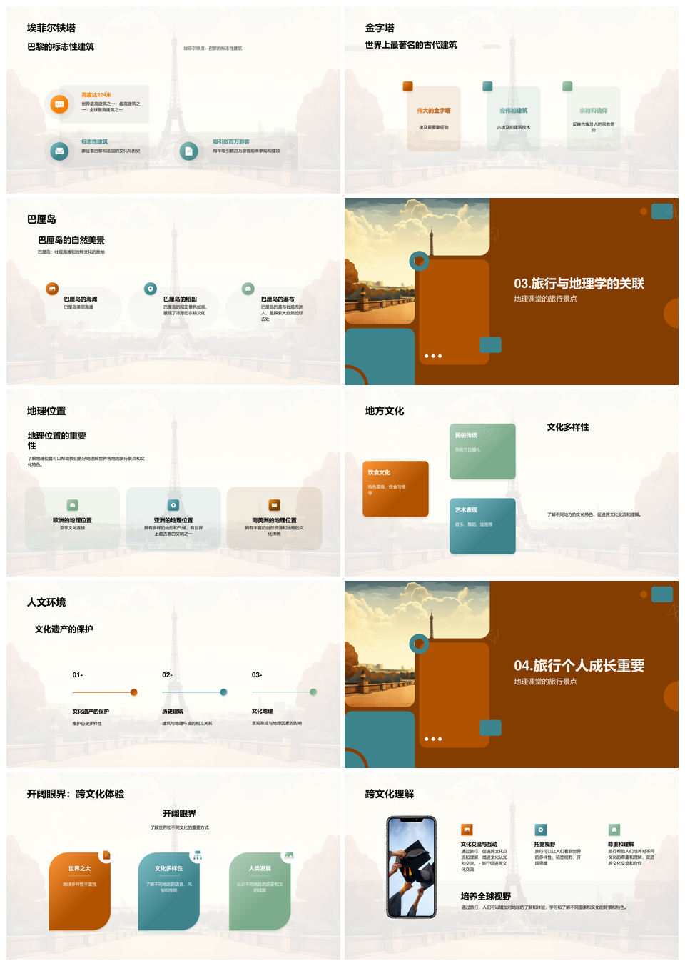 探索世界之旅学子探秘埃菲尔金字塔巴厘岛PPT模板推荐