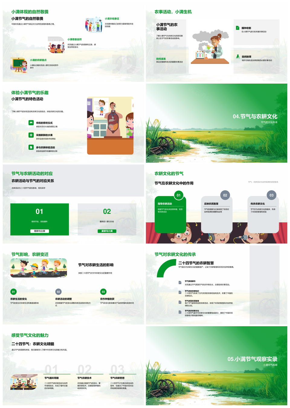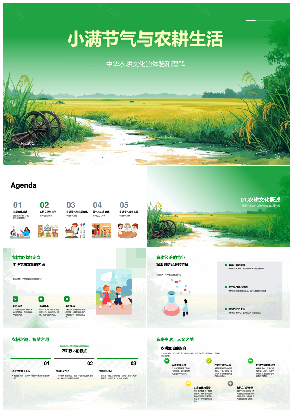 风云办公提供的小满节气中华农耕文化与二十四节气PPT模板,下载格式为pptx,一共33页,作品中文字及图均可以修改和编辑,图片更改请在作品中右键图片并更换,文字修改请直接点击文字进行修改。