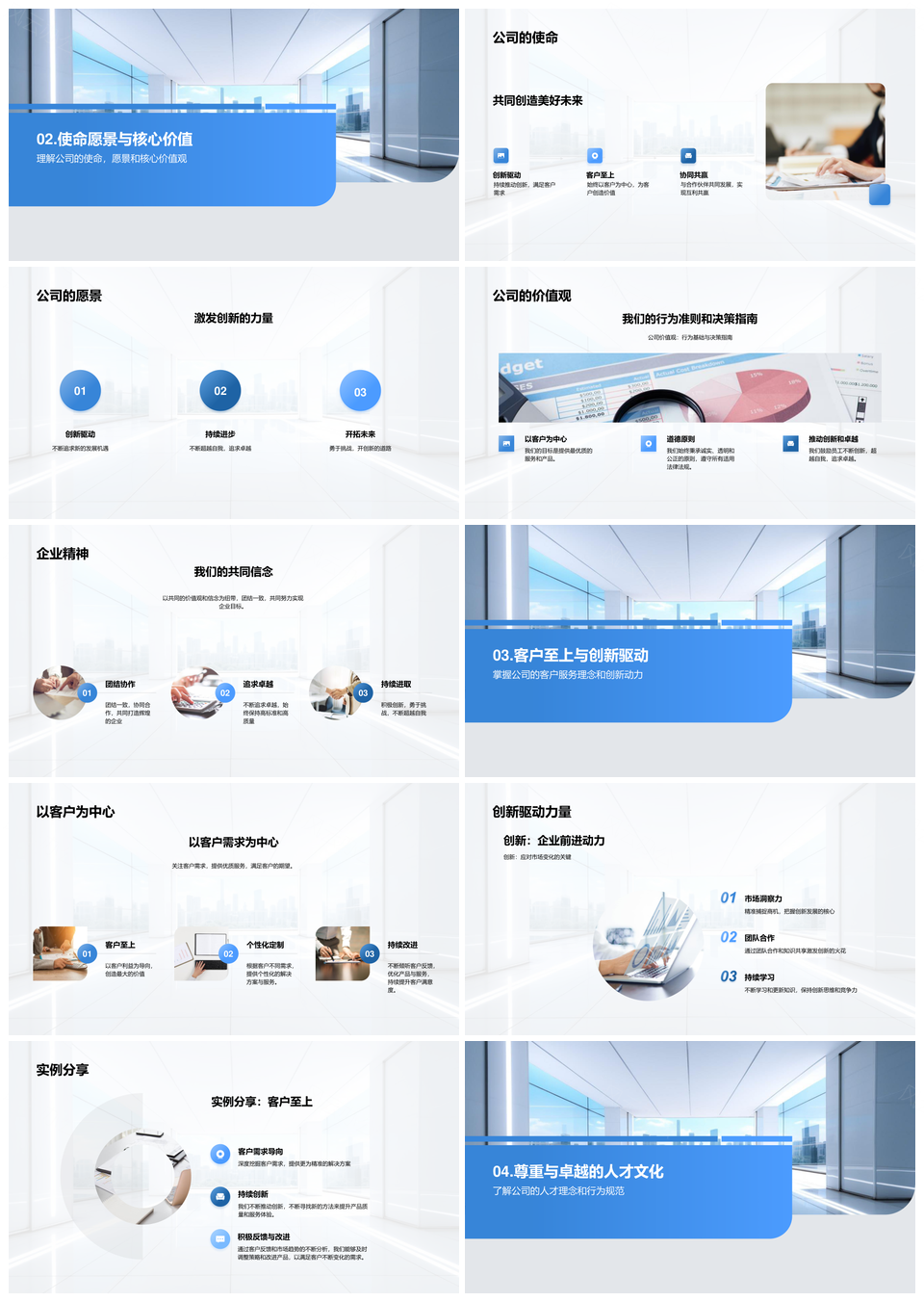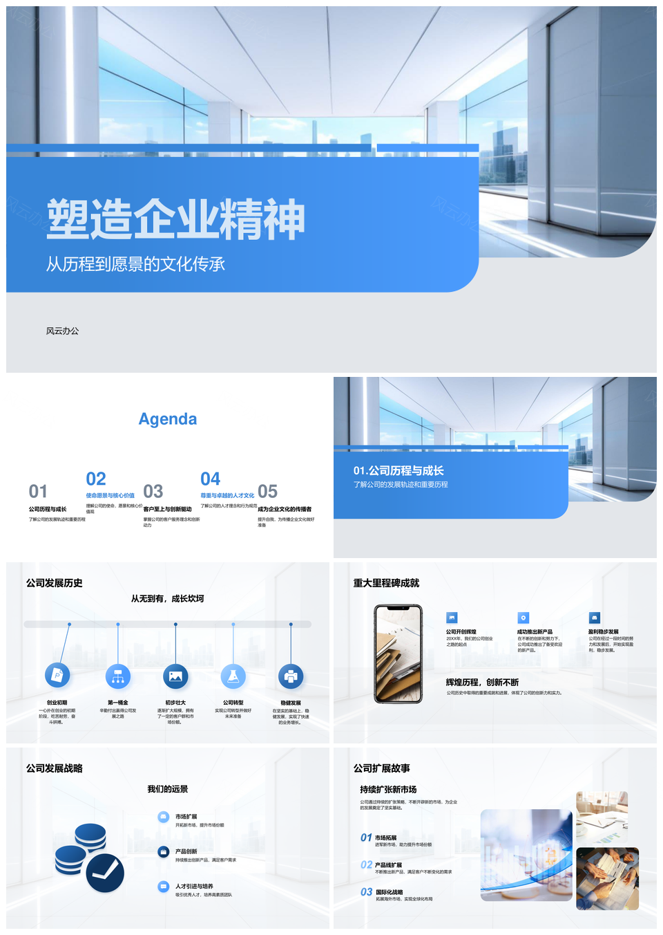 风云办公提供的企业精神历程战略实例行动践行PPT模板,下载格式为pptx,一共27页,作品中文字及图均可以修改和编辑,图片更改请在作品中右键图片并更换,文字修改请直接点击文字进行修改。