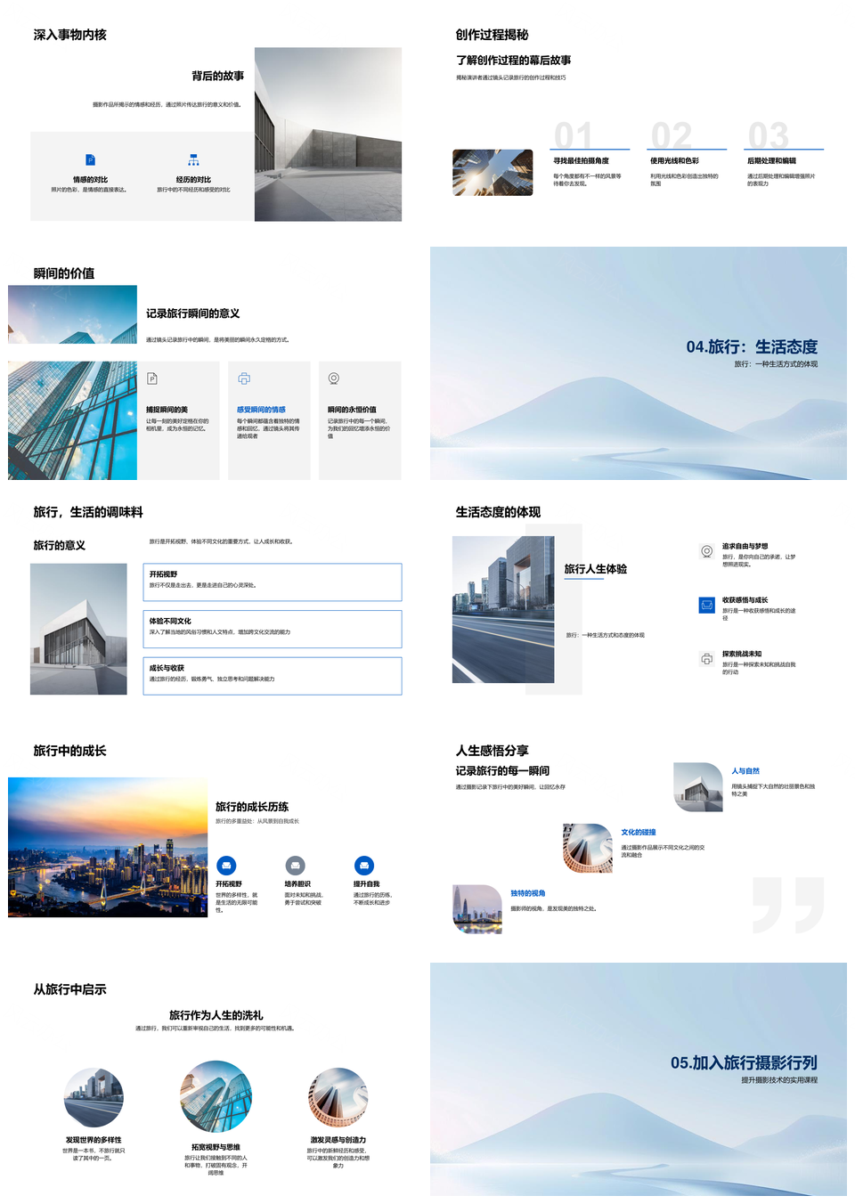 旅行摄影技术器材文化创作故事分享生活态度PPT模板