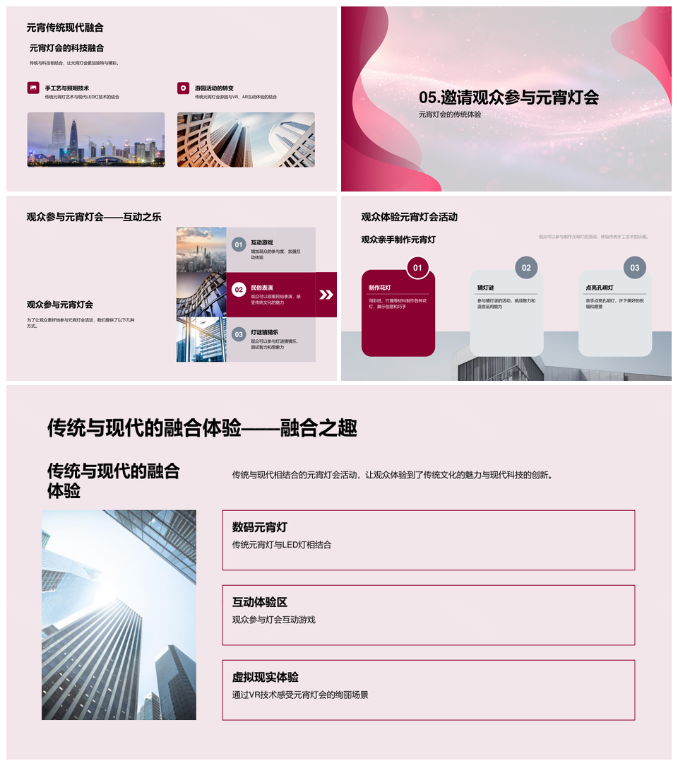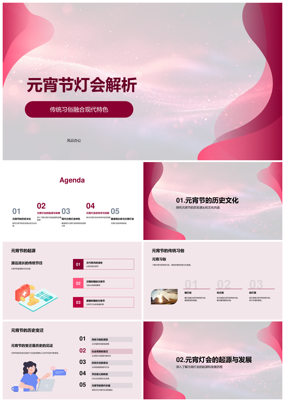 这是一张元宵灯会传统现代发展历程科技应用解析PPT模板,包含元宵灯会、传统、现代、发展、历程、科技、应用、解析等主题内容,也可用作元宵灯会传统现代发展历程、元宵灯会传统现代发展、灯会传统现代发展历程、传统现代发展历程科技、现代发展历程科技应用、发展历程科技应用解析、元宵灯会发展历程科技、传统现代科技应用解析、灯会现代科技应用解析、元宵灯会传统发展、灯会传统现代科技、发展历程科技应用、传统现代科技应用、现代科技应用解析、元宵灯会科技等PPT场景使用。 风云办公提供的元宵灯会传统现代发展历程科技应用解析PPT模板,下载格式为pptx,一共23页,作品中文字及图均可以修改和编辑,图片更改请在作品中右键图片并更换,文字修改请直接点击文字进行修改。