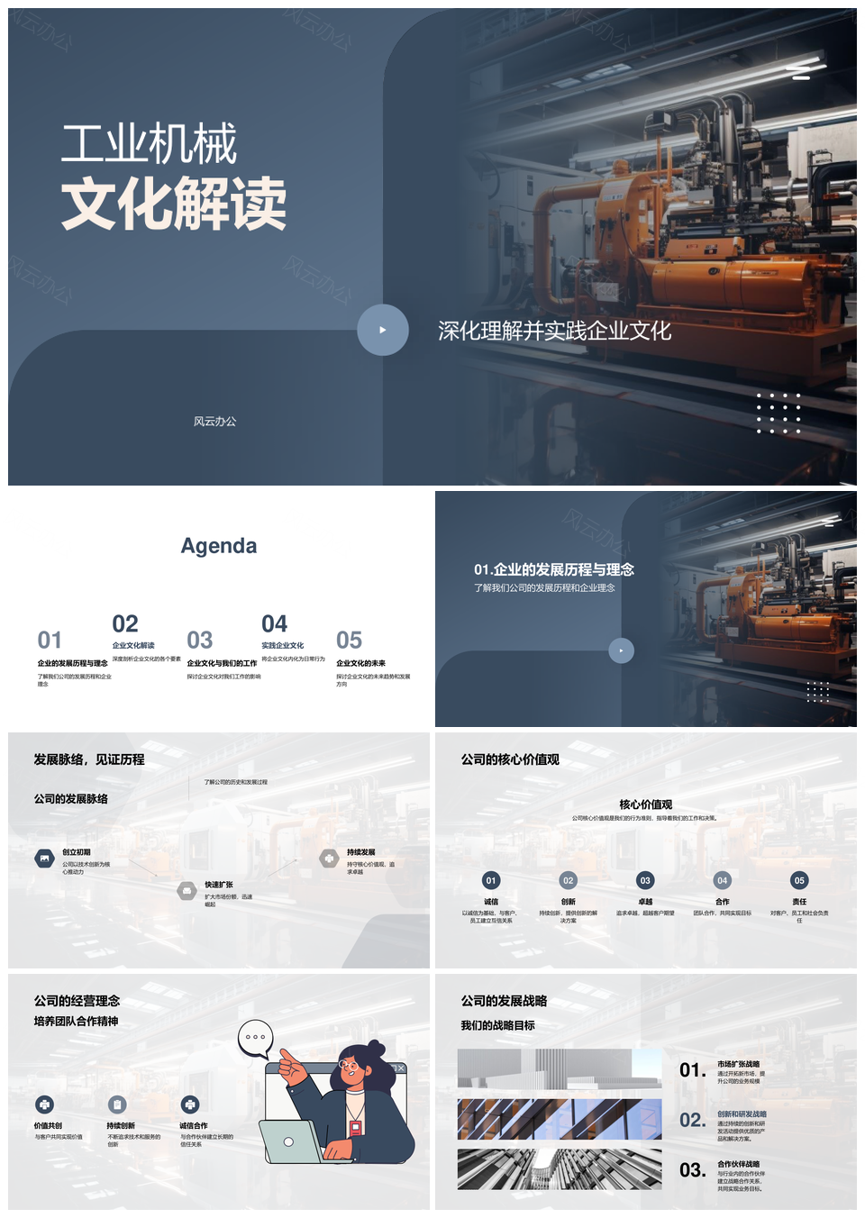 风云办公提供的工业机械企业文化发展历程核心理念PPT模板,下载格式为pptx,一共28页,作品中文字及图均可以修改和编辑,图片更改请在作品中右键图片并更换,文字修改请直接点击文字进行修改。