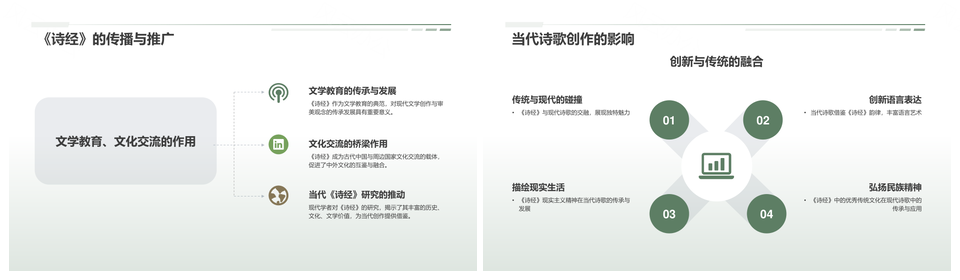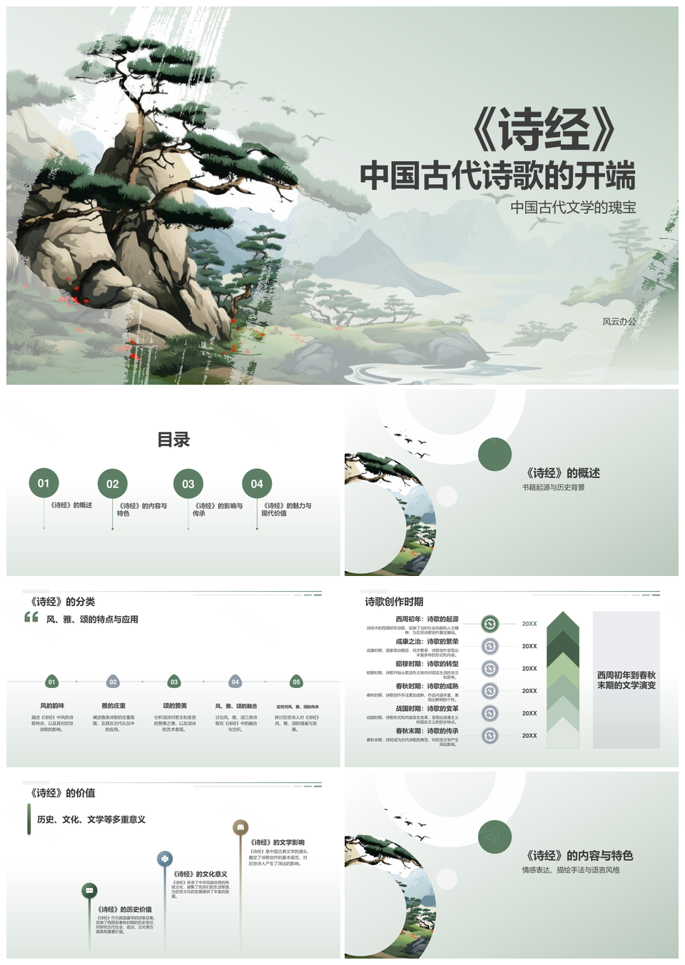 这是一张诗经古典诗歌传统文化教育国风诗人读书PPT模板,包含诗经、古典诗歌、传统文化、教育、国风、诗人、读书等主题内容,也可用作诗经古典诗歌传统文化、传统文化教育国风诗人、诗经古典诗歌教育、古典诗歌传统文化教育、诗歌传统文化教育国风、教育国风诗人读书、诗经古典传统文化、古典诗歌教育国风、诗经诗歌国风诗人、传统文化国风诗人、诗经古典诗歌、古典诗歌教育、传统文化教育国风、教育国风诗人、国风诗人读书等PPT场景使用。 风云办公提供的诗经古典诗歌传统文化教育国风诗人读书PPT模板,下载格式为pptx,一共20页,作品中文字及图均可以修改和编辑,图片更改请在作品中右键图片并更换,文字修改请直接点击文字进行修改。
