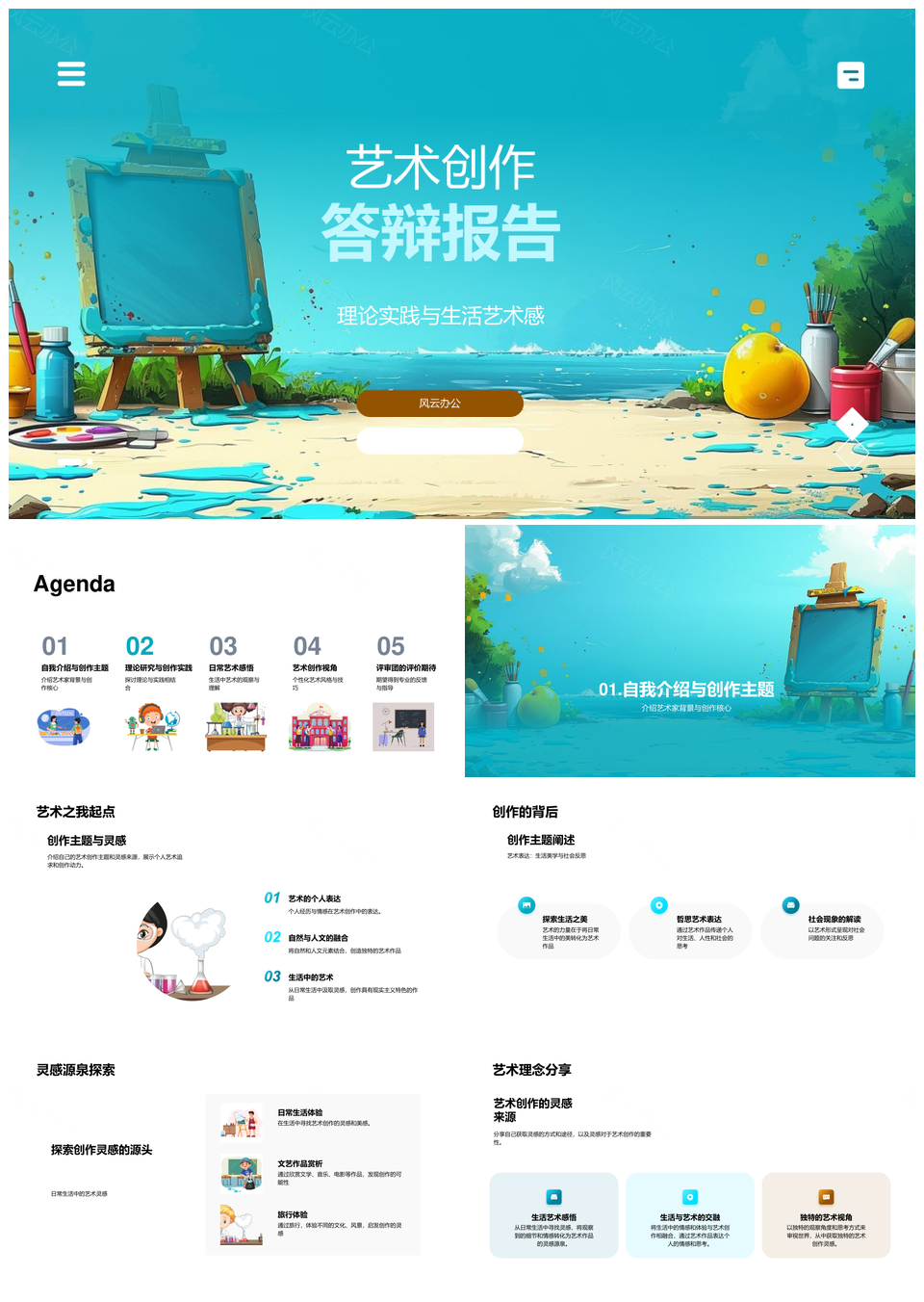 艺术流派创作技法材料灵感主题理论实践答辩PPT模板
