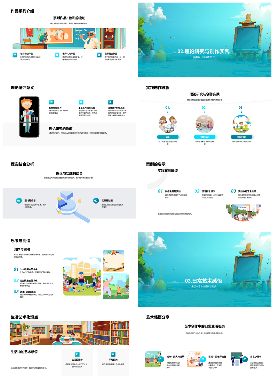 艺术创作答辩理论实践与生活艺术创作主题研究PPT模板推荐