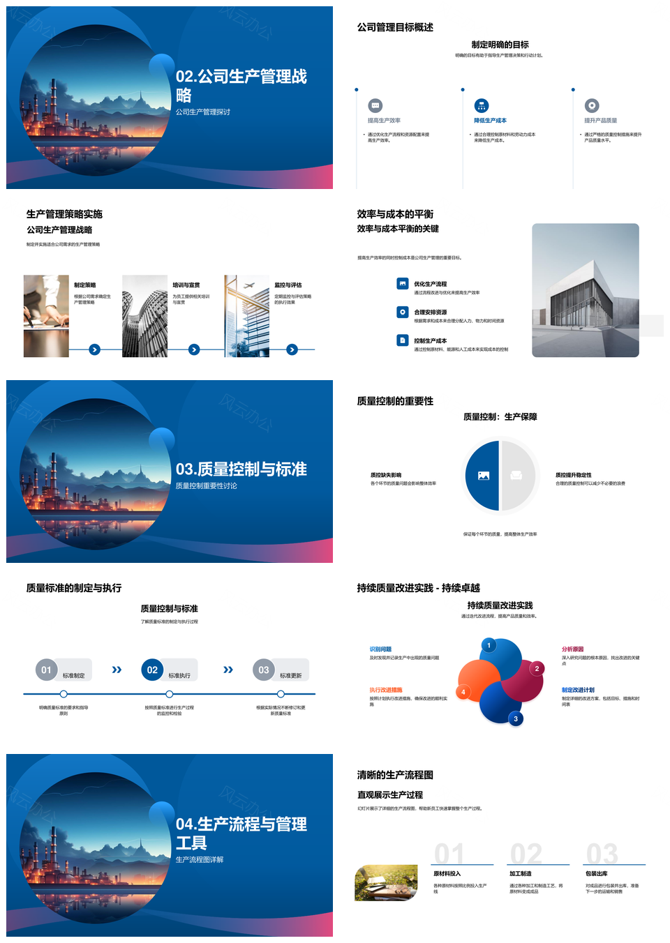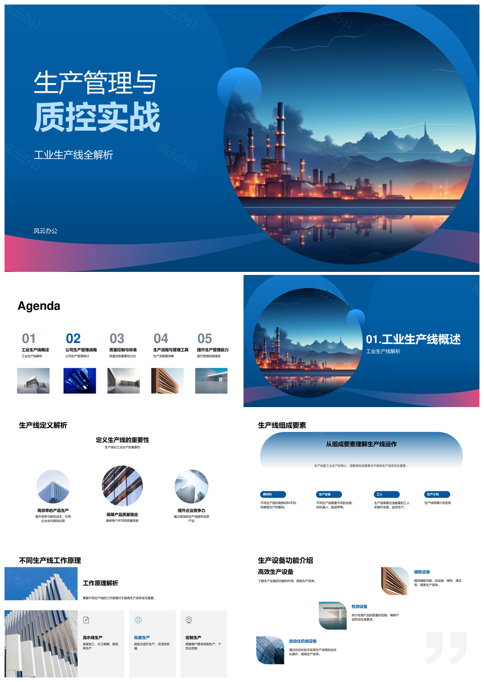 风云办公提供的工业生产管理质控与设备效率优化实战PPT模板,下载格式为pptx,一共25页,作品中文字及图均可以修改和编辑,图片更改请在作品中右键图片并更换,文字修改请直接点击文字进行修改。