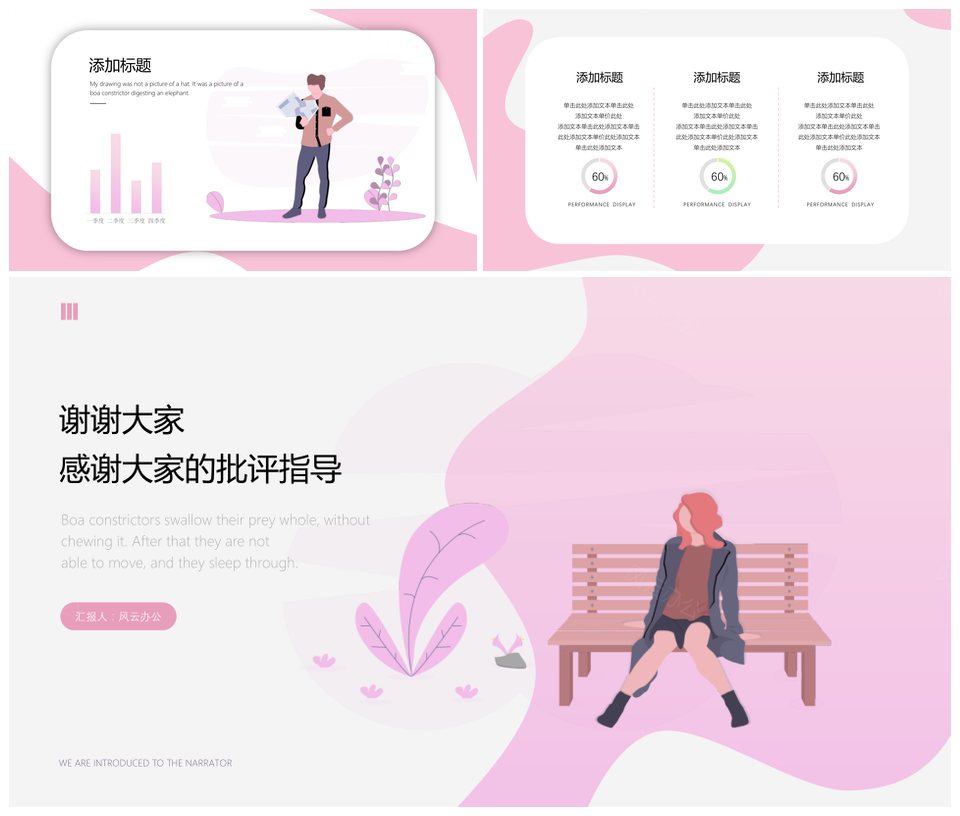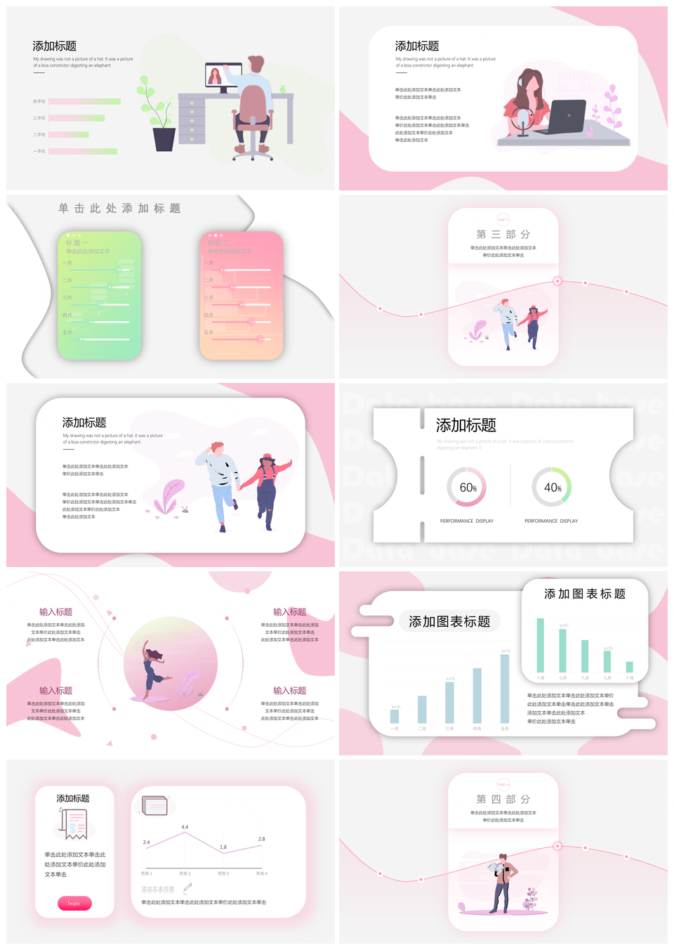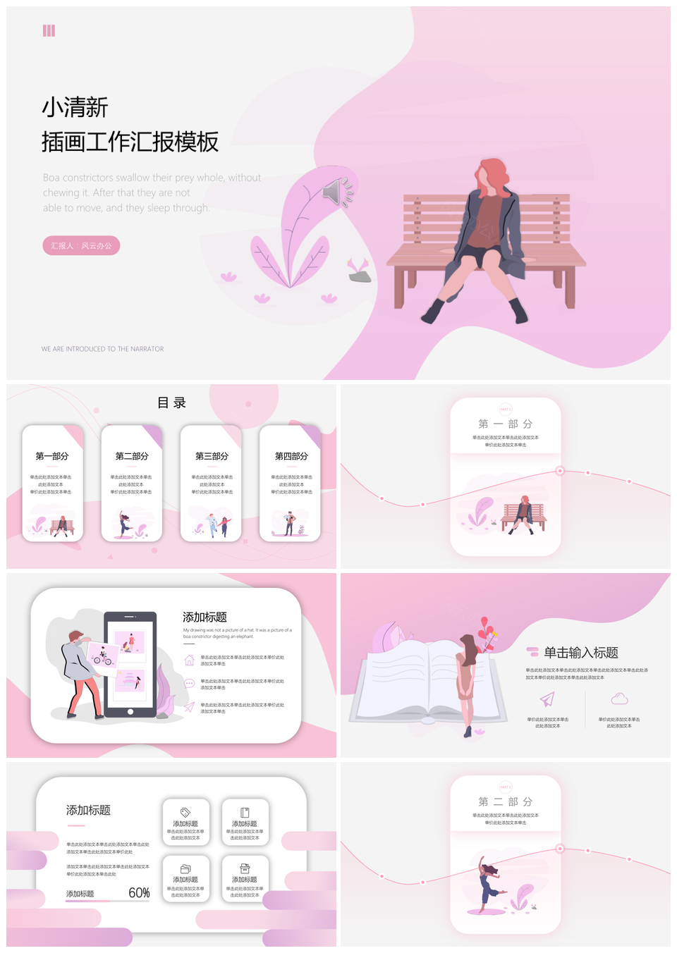 工作计划粉色插画小清新年终总结汇报PPT模板