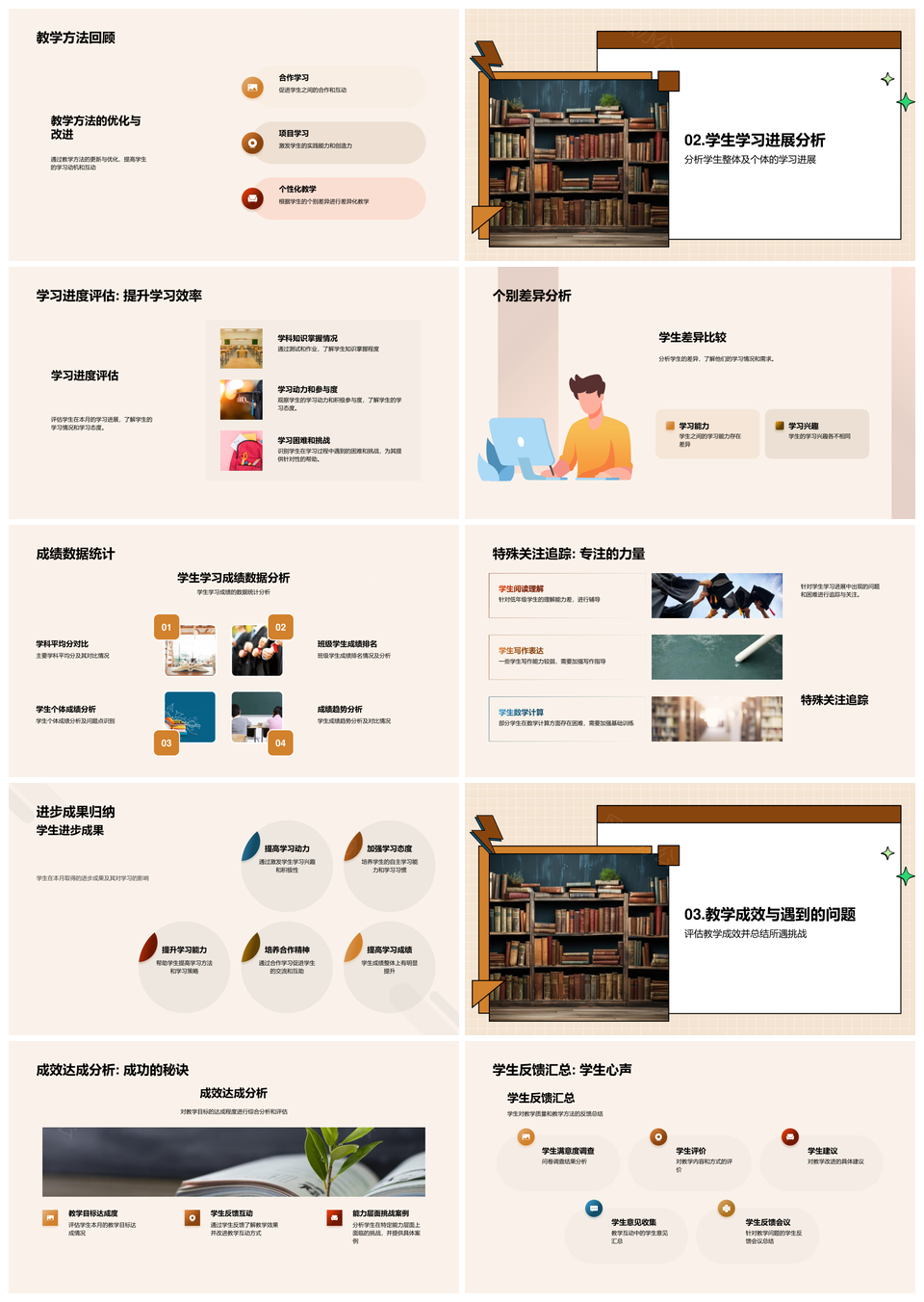 教学成效学生进展目标达成成绩跟踪互动评估PPT模板推荐