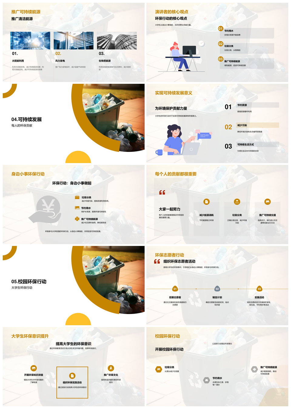 风云办公提供的大学生环保行动从身边小事做起PPT模板,下载格式为pptx,一共30页,作品中文字及图均可以修改和编辑,图片更改请在作品中右键图片并更换,文字修改请直接点击文字进行修改。