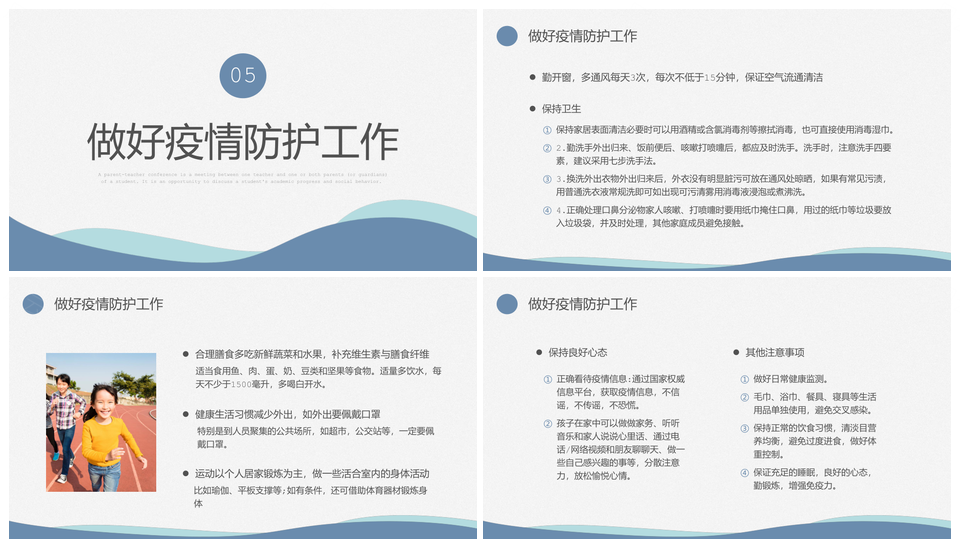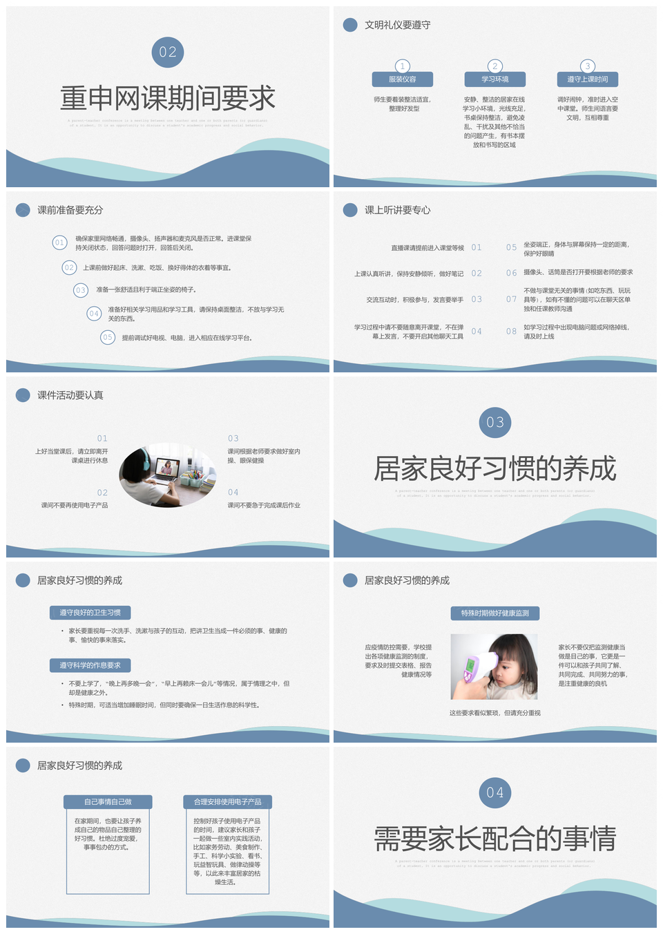 2025疫情开学线上家长会网课要求居家防护家校共育PPT模板推荐