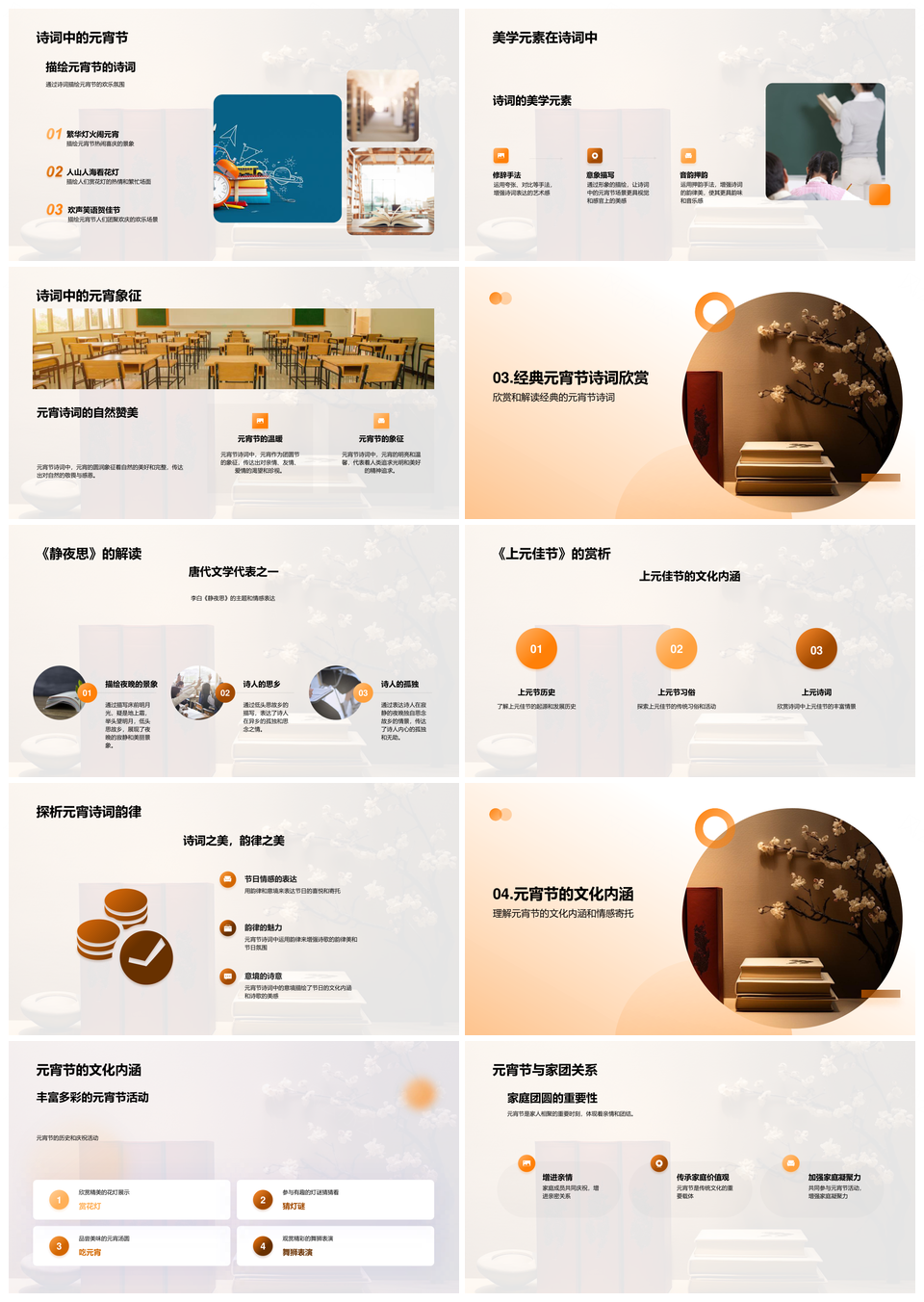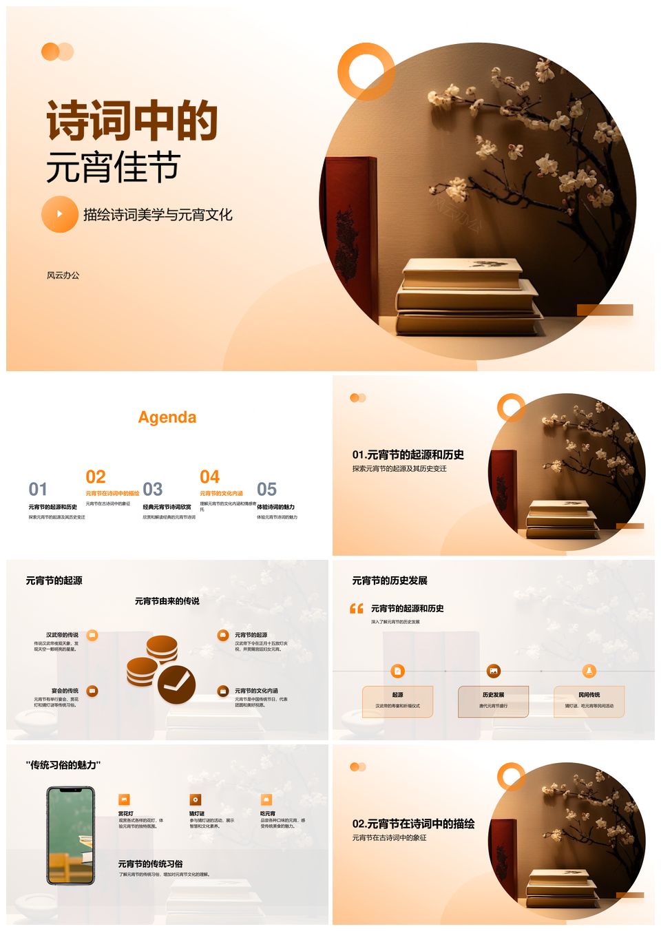2025诗词元宵节美学历史习俗灯笼象征PPT模板推荐