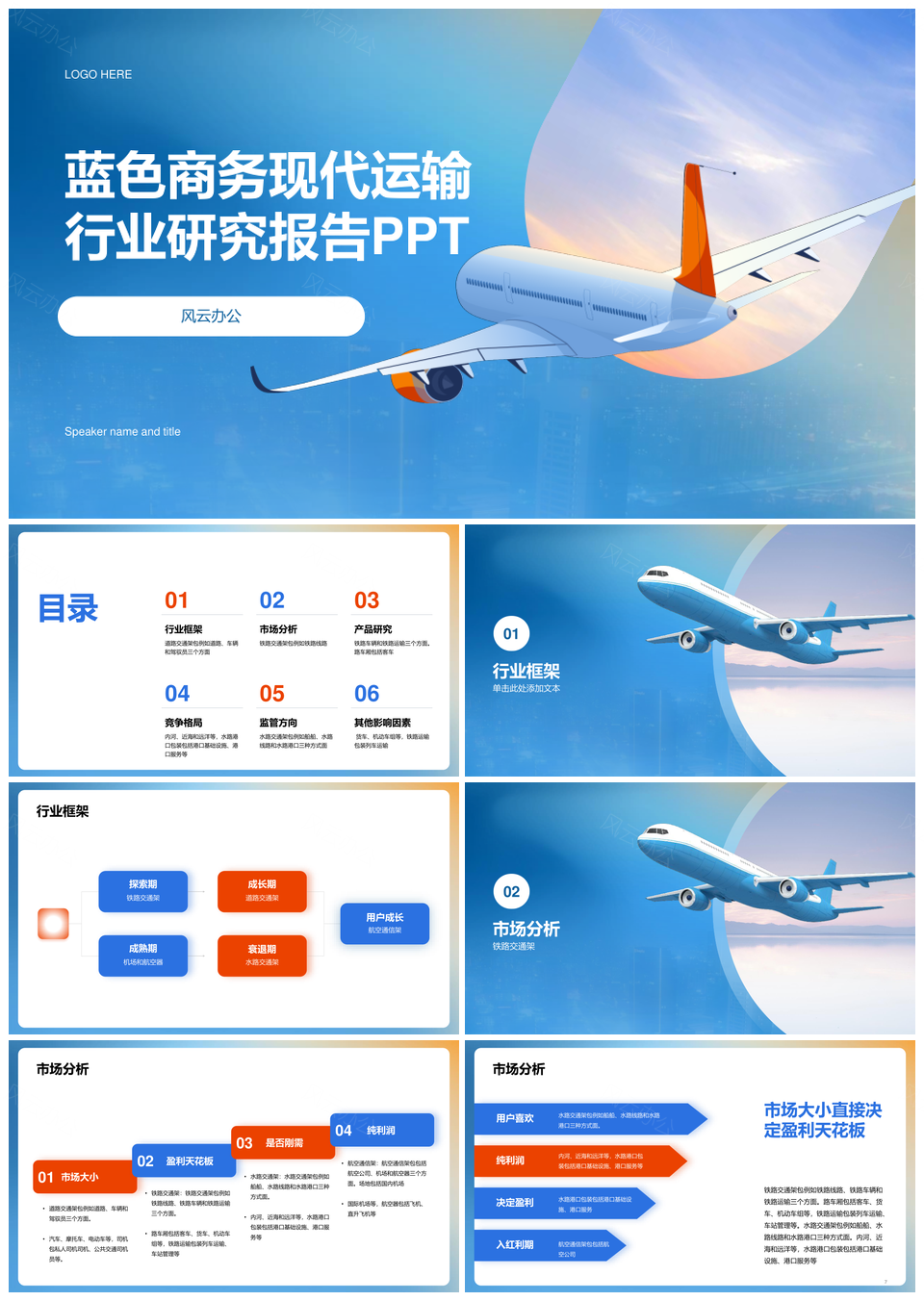 风云办公提供的蓝色商务现代运输行业研究报告PPT模板,下载格式为pptx,一共20页,作品中文字及图均可以修改和编辑,图片更改请在作品中右键图片并更换,文字修改请直接点击文字进行修改。