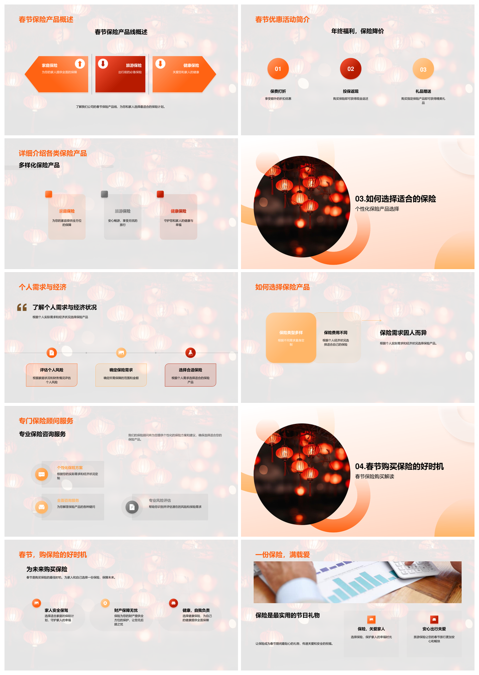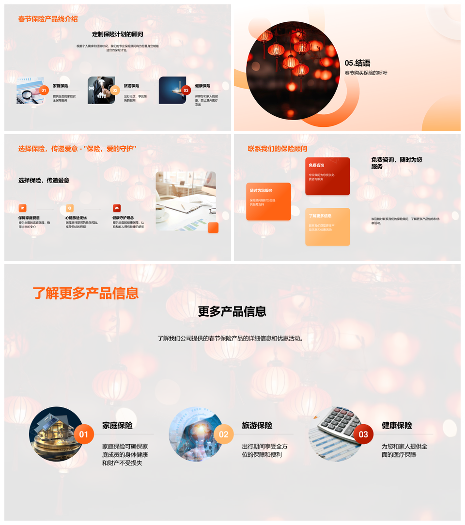 这是一张春节送爱选家庭旅游健康保险PPT模板,包含春节、送爱、家庭旅游、健康保险等主题内容,也可用作家庭旅游健康保险、春节家庭健康保险、春节家庭旅游、家庭旅游健康、旅游健康保险、春节家庭健康、家庭健康保险、健康保险、家庭旅游、春节家庭、旅游健康、家庭健康、春节健康保险、家庭保险、春节保险等PPT场景使用。 风云办公提供的春节送爱选家庭旅游健康保险PPT模板,下载格式为pptx,一共23页,作品中文字及图均可以修改和编辑,图片更改请在作品中右键图片并更换,文字修改请直接点击文字进行修改。