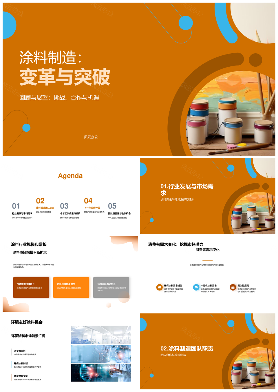 涂料制造年终总结团队发展环保涂料行业趋势PPT模板推荐