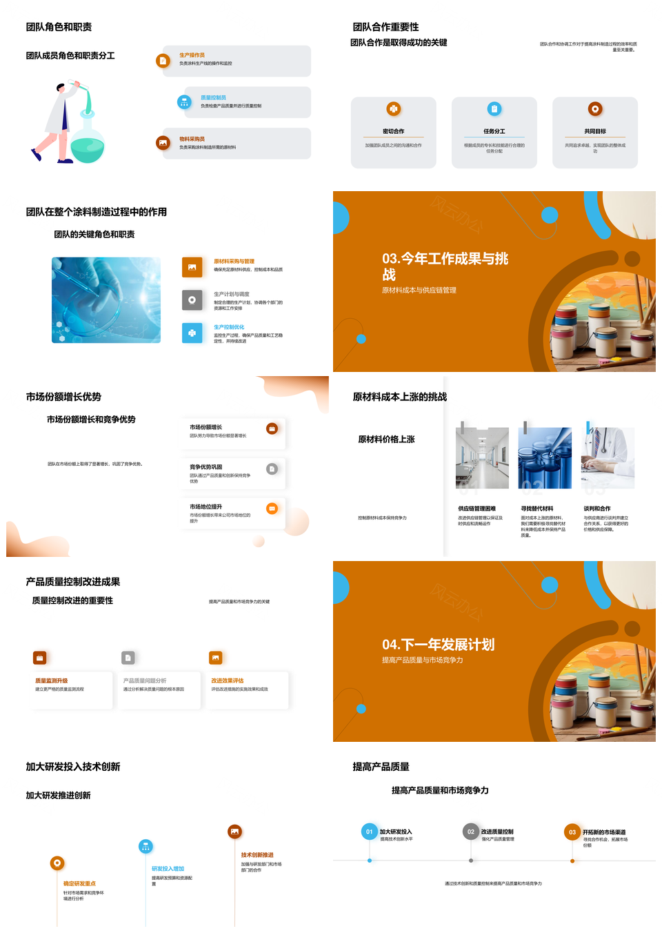 涂料制造年终总结团队发展环保涂料行业趋势PPT模板