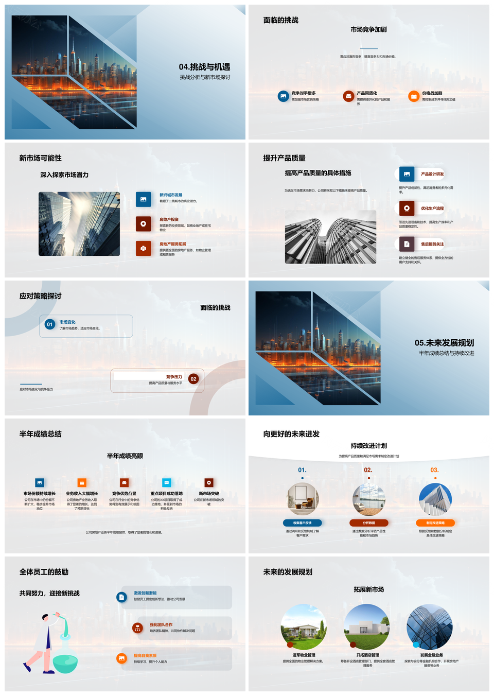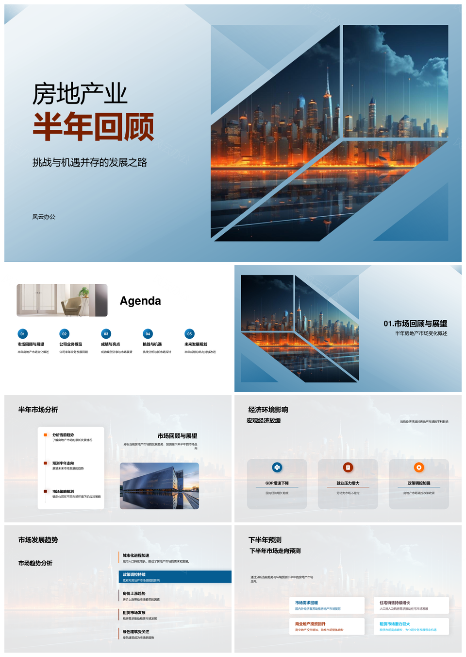 房地产业半年挑战机遇市场趋势经济影响增长优势摩天PPT模板