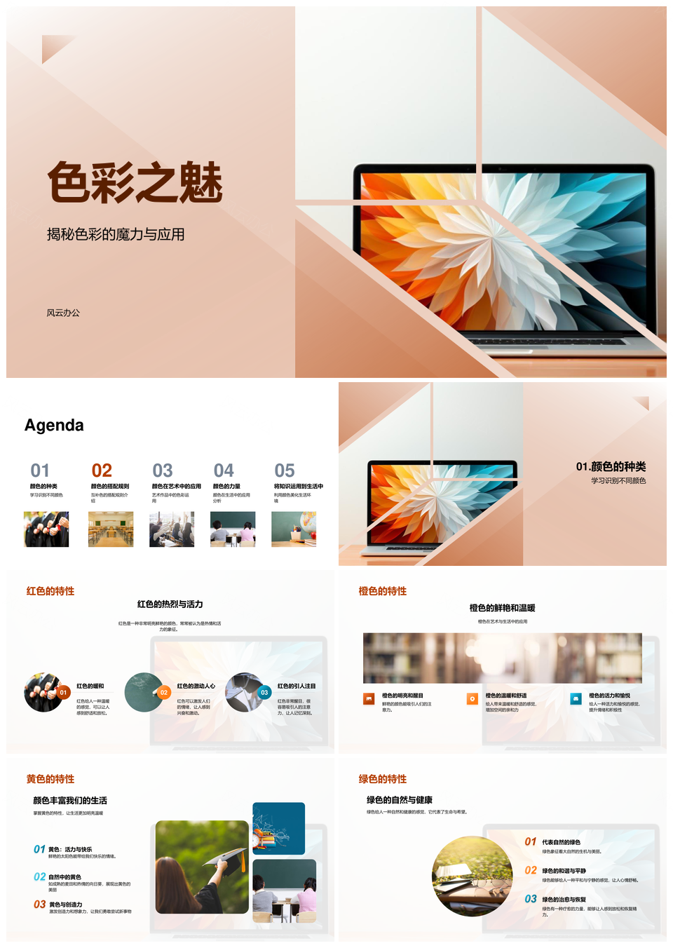 风云办公提供的色彩之魅色轮艺境情绪生活幼教美术PPT模板,下载格式为pptx,一共34页,作品中文字及图均可以修改和编辑,图片更改请在作品中右键图片并更换,文字修改请直接点击文字进行修改。