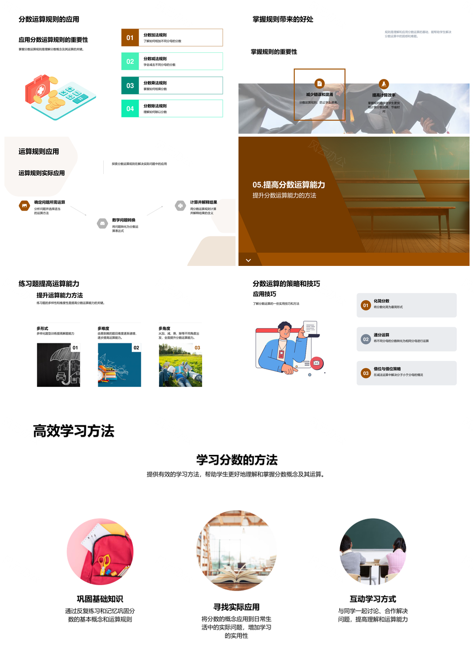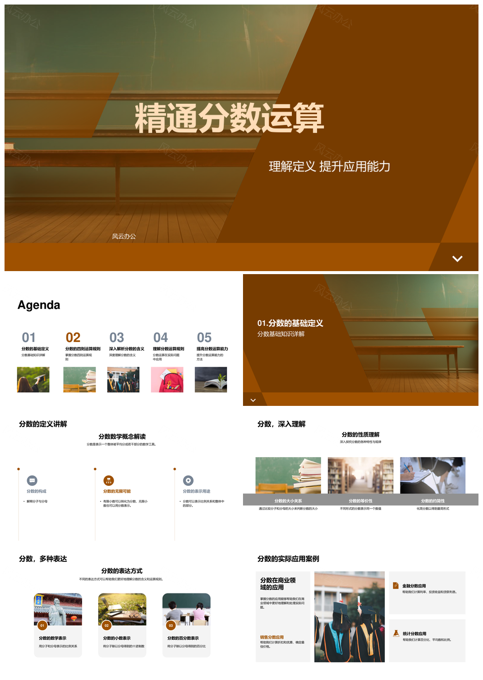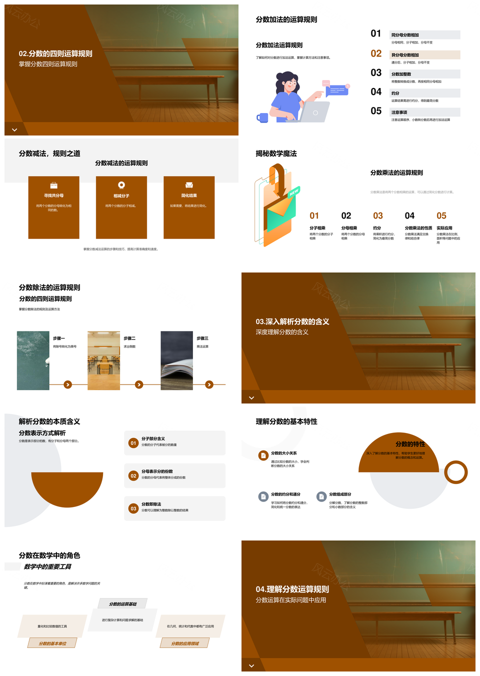 风云办公提供的分数运算定义与四则运算规则精解PPT模板,下载格式为pptx,一共25页,作品中文字及图均可以修改和编辑,图片更改请在作品中右键图片并更换,文字修改请直接点击文字进行修改。