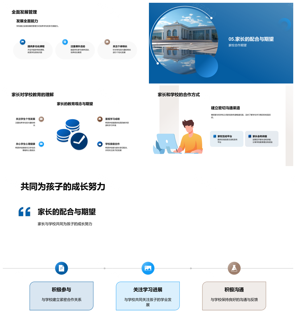 风云办公提供的家校共育启新程理念资源同发展PPT模板,下载格式为pptx,一共23页,作品中文字及图均可以修改和编辑,图片更改请在作品中右键图片并更换,文字修改请直接点击文字进行修改。