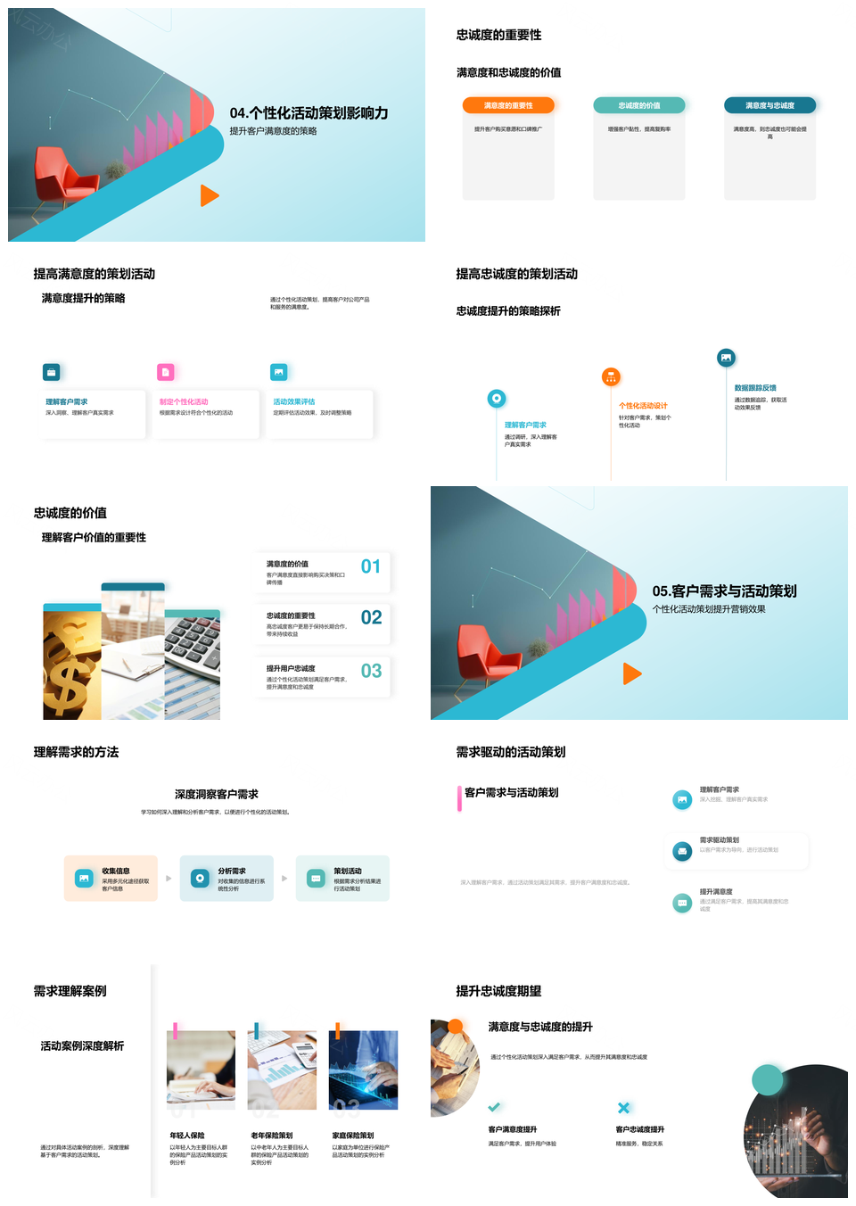 这是一张保险客户需求分析驱动个性化营销活动策划PPT模板,包含保险客户、需求、分析、驱动、个性化、营销、活动、策划等主题内容,也可用作保险客户需求分析驱动、客户需求分析驱动个性化、需求分析驱动个性化营销活动、驱动个性化营销活动策划、保险客户需求分析、客户需求分析驱动、需求分析驱动个性化、驱动个性化营销活动、个性化营销活动策划、保险客户、客户需求分析、需求分析驱动、驱动个性化、个性化营销活动、营销活动策划等PPT场景使用。 风云办公提供的保险客户需求分析驱动个性化营销活动策划PPT模板,下载格式为pptx,一共28页,作品中文字及图均可以修改和编辑,图片更改请在作品中右键图片并更换,文字修改请直接点击文字进行修改。