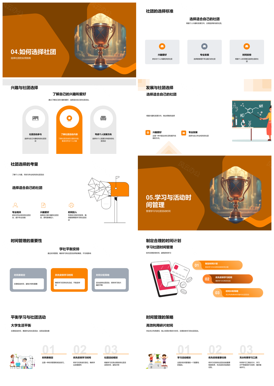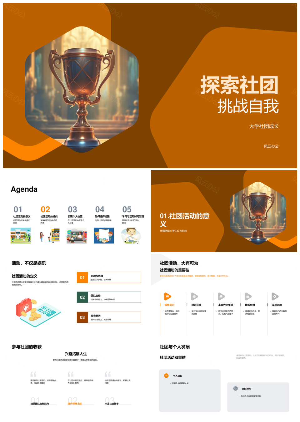 风云办公提供的大学社团挑战自我成长时间管理PPT模板,下载格式为pptx,一共28页,作品中文字及图均可以修改和编辑,图片更改请在作品中右键图片并更换,文字修改请直接点击文字进行修改。