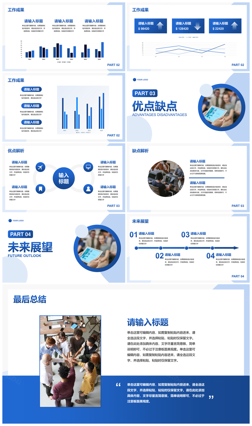 2025蓝色商务简约工作总结部门工作汇报PPT模板