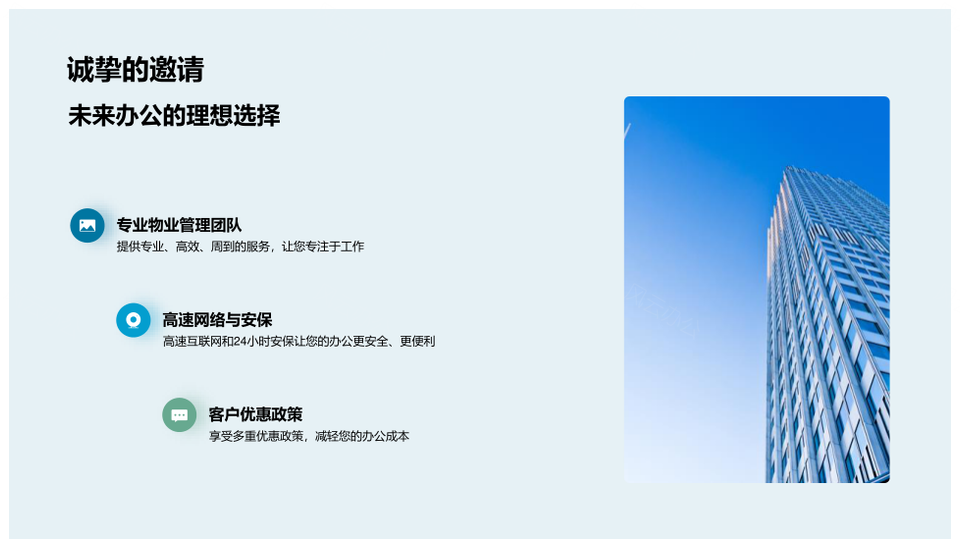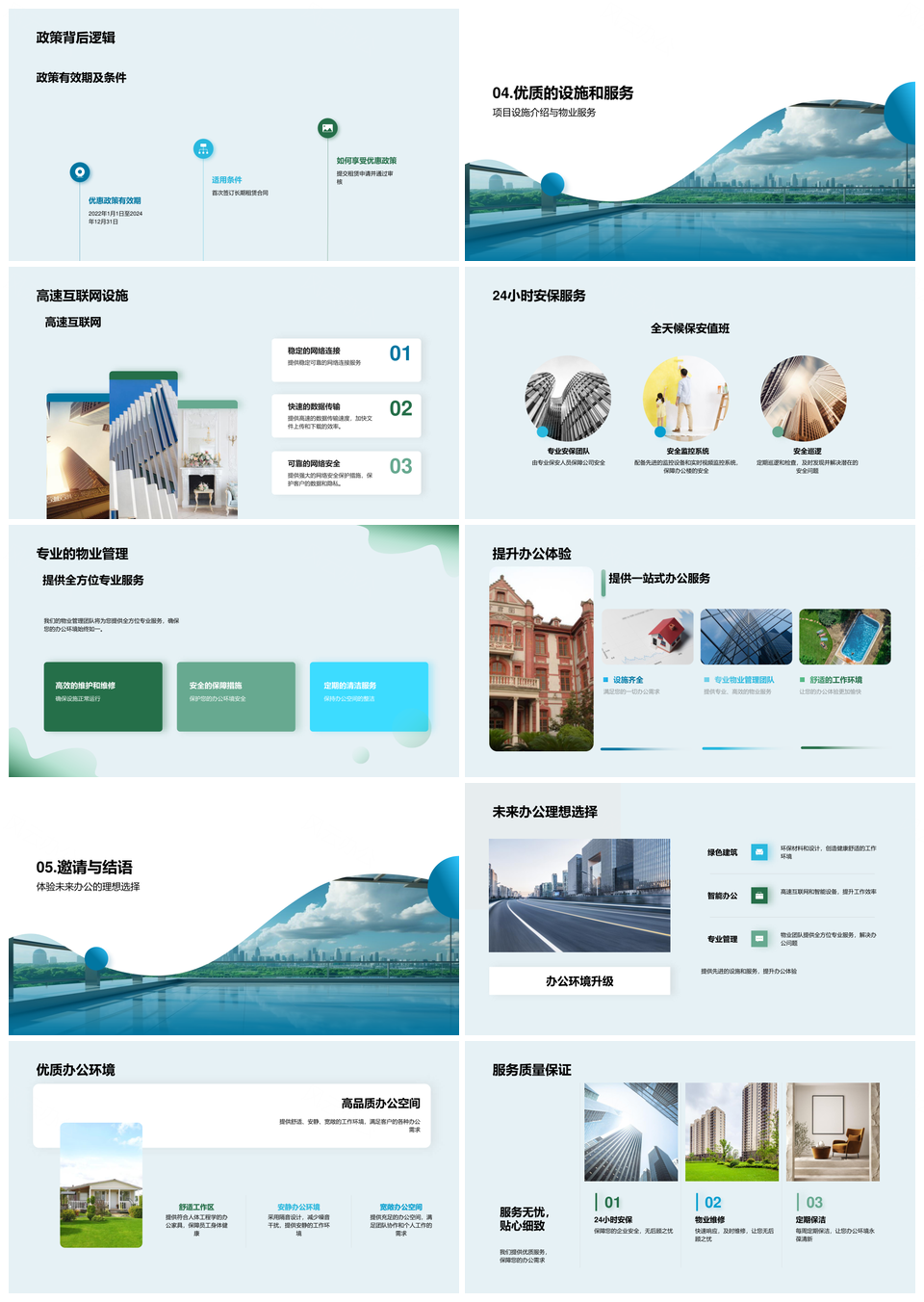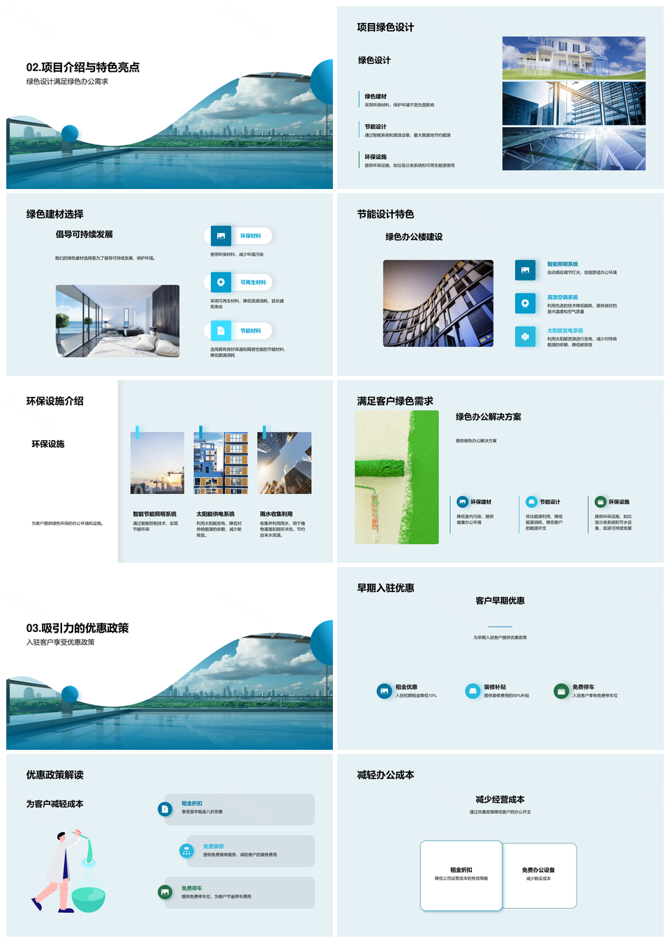这是一张绿色办公楼环保节能设计优策领市场体验PPT模板,包含绿色办公楼、环保节能设计、优策、领市场体验等主题内容,也可用作绿色办公楼环保节能、办公楼环保节能设计、环保节能设计优策、节能设计优策市场、设计优策市场体验、绿色办公楼环保、办公楼环保节能、环保节能设计、节能设计优策、设计优策市场、优策市场体验、绿色办公楼、环保节能、节能设计、设计优策等PPT场景使用。 风云办公提供的绿色办公楼环保节能设计优策领市场体验PPT模板,下载格式为pptx,一共29页,作品中文字及图均可以修改和编辑,图片更改请在作品中右键图片并更换,文字修改请直接点击文字进行修改。