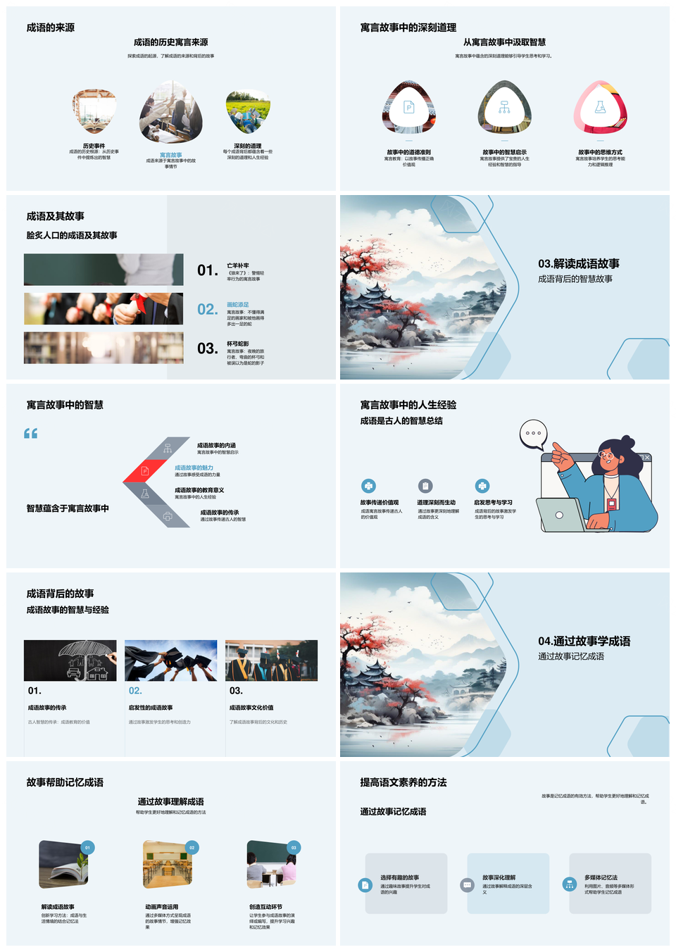 风云办公提供的成语寓言起源发展小学语文教学课件,下载格式为pptx,一共23页,作品中文字及图均可以修改和编辑,图片更改请在作品中右键图片并更换,文字修改请直接点击文字进行修改。