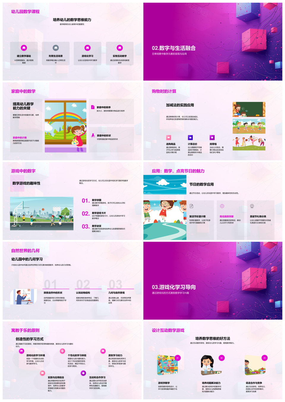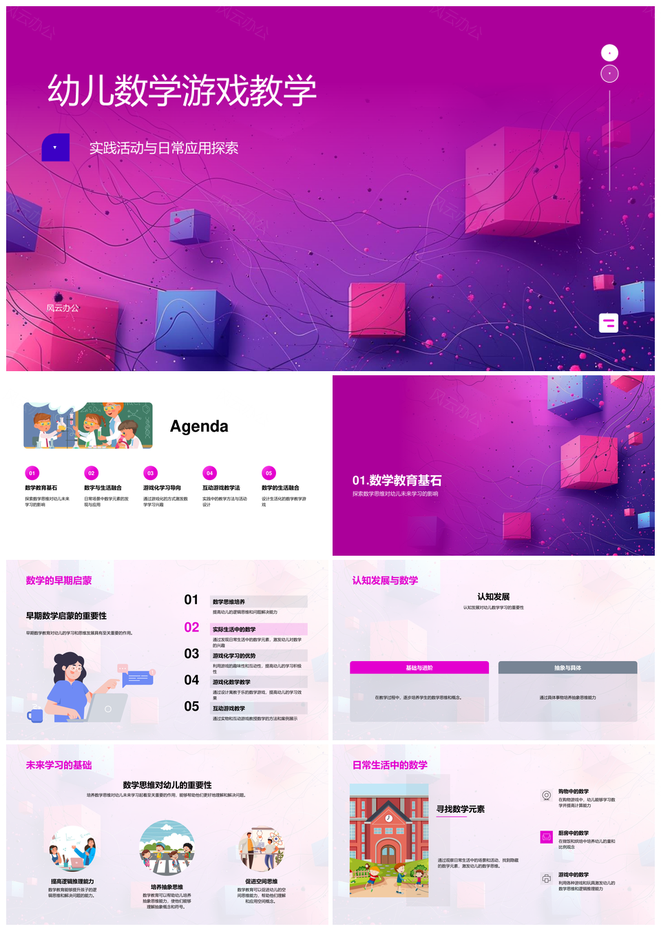 风云办公提供的幼儿数学游戏思维生活教学生活化PPT模板,下载格式为pptx,一共33页,作品中文字及图均可以修改和编辑,图片更改请在作品中右键图片并更换,文字修改请直接点击文字进行修改。